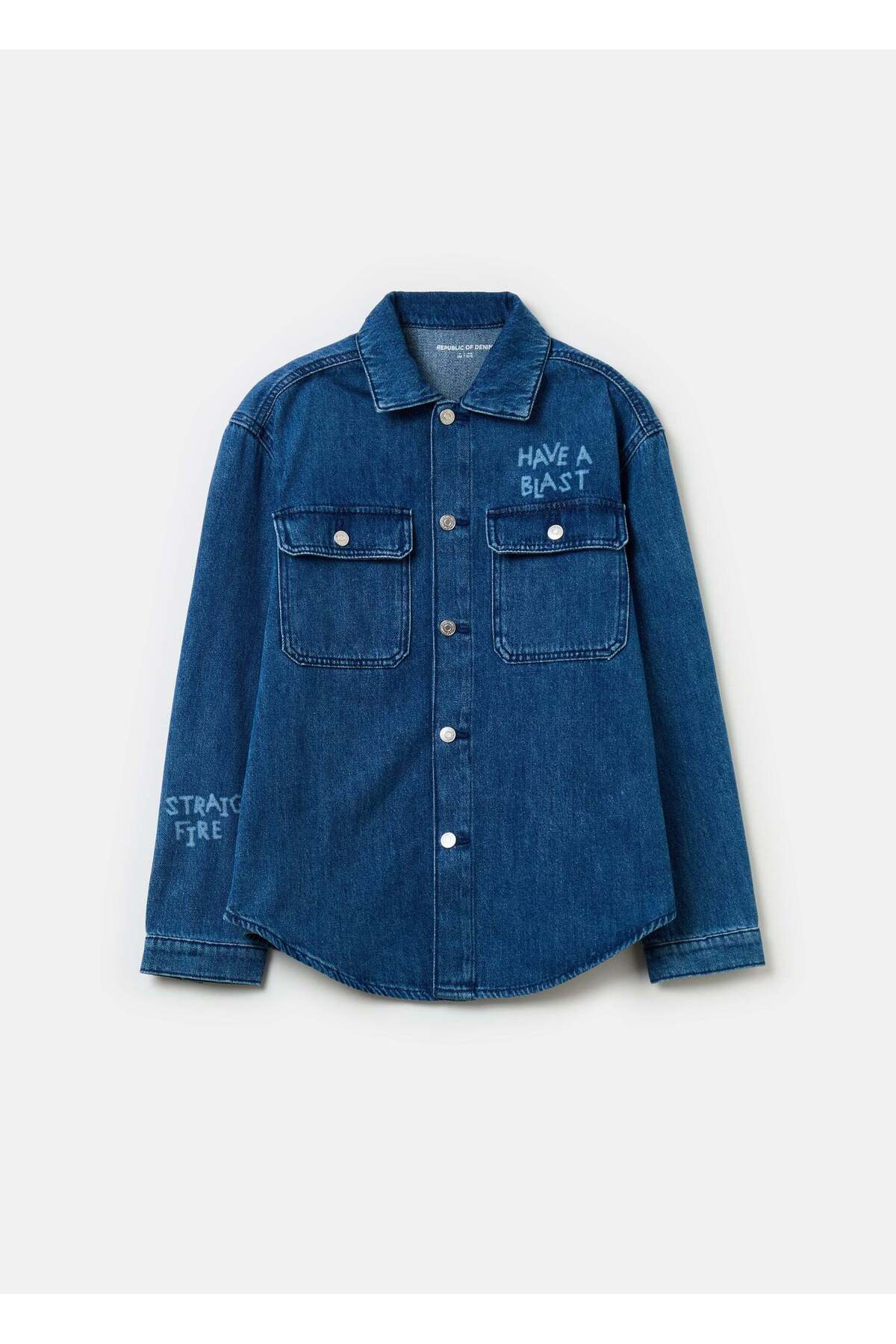 ميزات جاكيت جينز مطبوع من Ovs