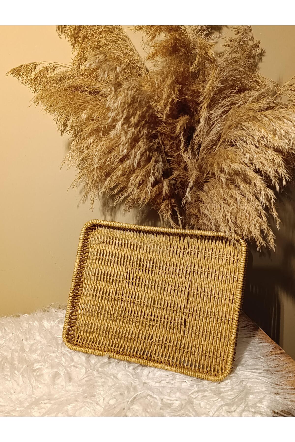 Paganca صينية تقديم مستطيلة من الخيزران والراتان