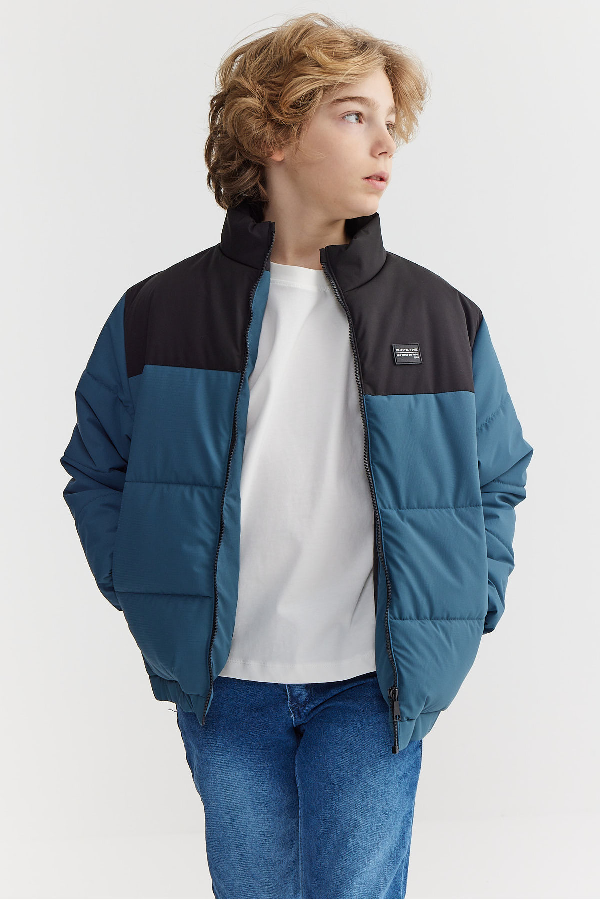 PAULMARK معطف ياقة مرتفعة متوسطة الطول للأولاد