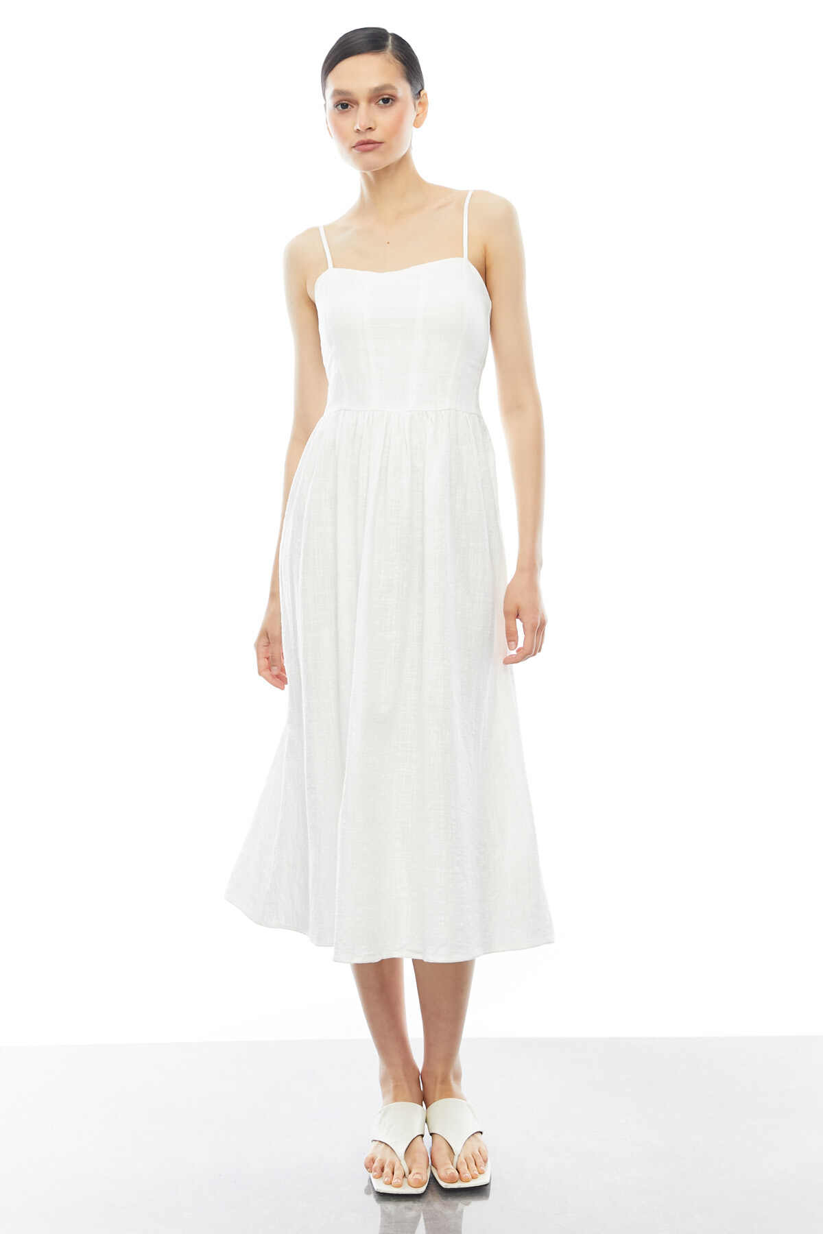 PAULMARK فستان بحمالات من الكتان المقلد