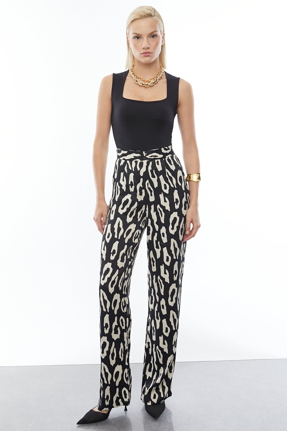 ميزات بنطلون منقوش ذو ملمس ساتان من PAULMARK