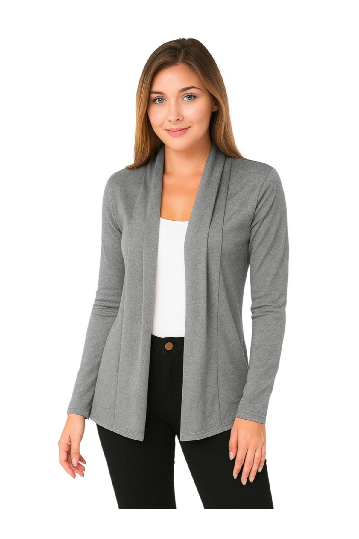 PAUSE By Styli بلوزة رمادية سادة مفتوحة من الأمام