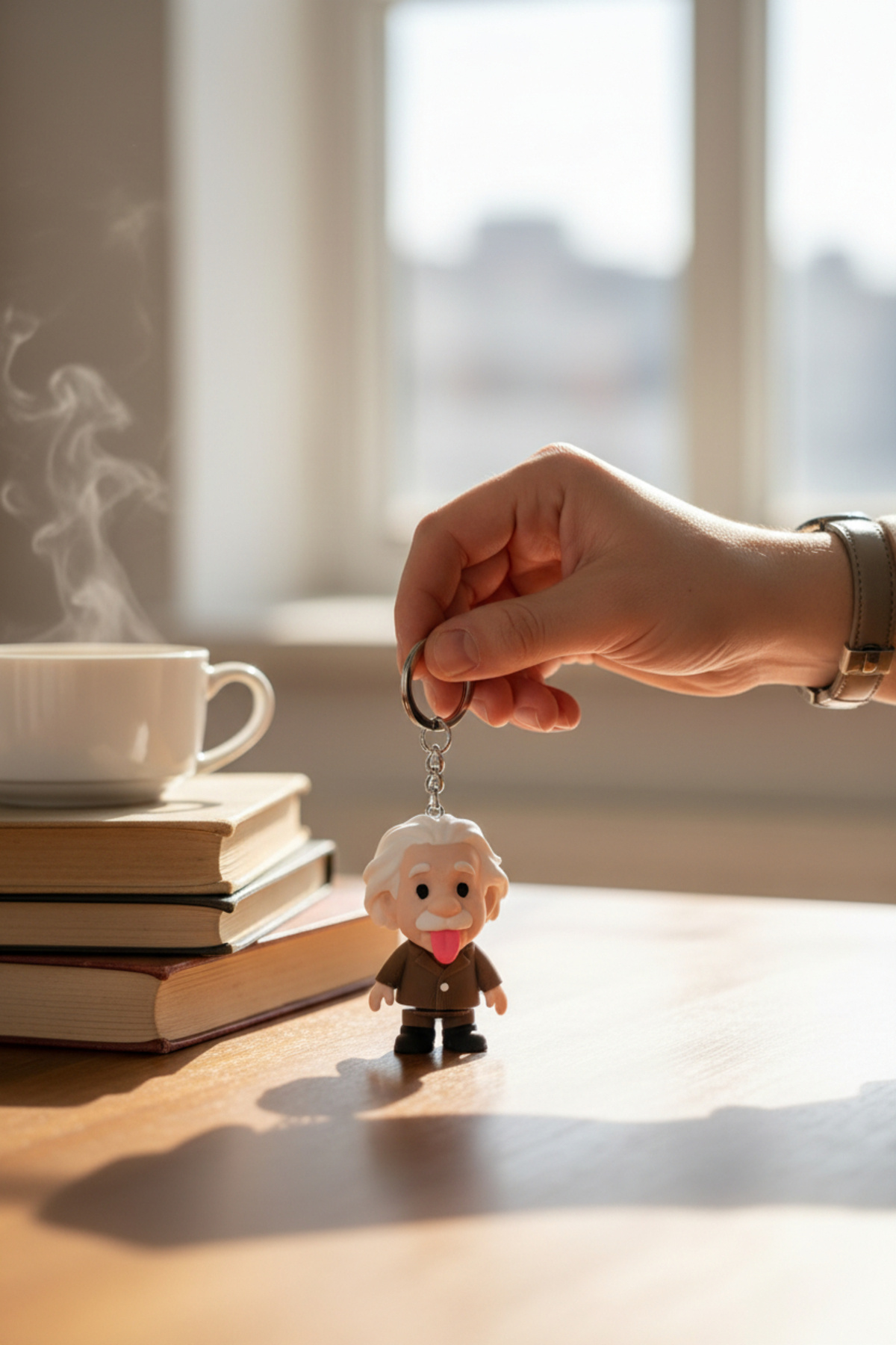ميزات سلسلة مفاتيح متحركة مع تمثال ألبرت أينشتاين من Pazarois