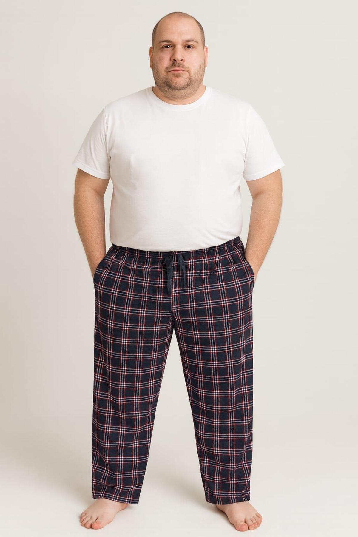 Pemilo بنطلون رجالي منقوش بمقاس كبير مصنوع من القطن بنسبة 100% مع جيوب وجزء سفلي واحد