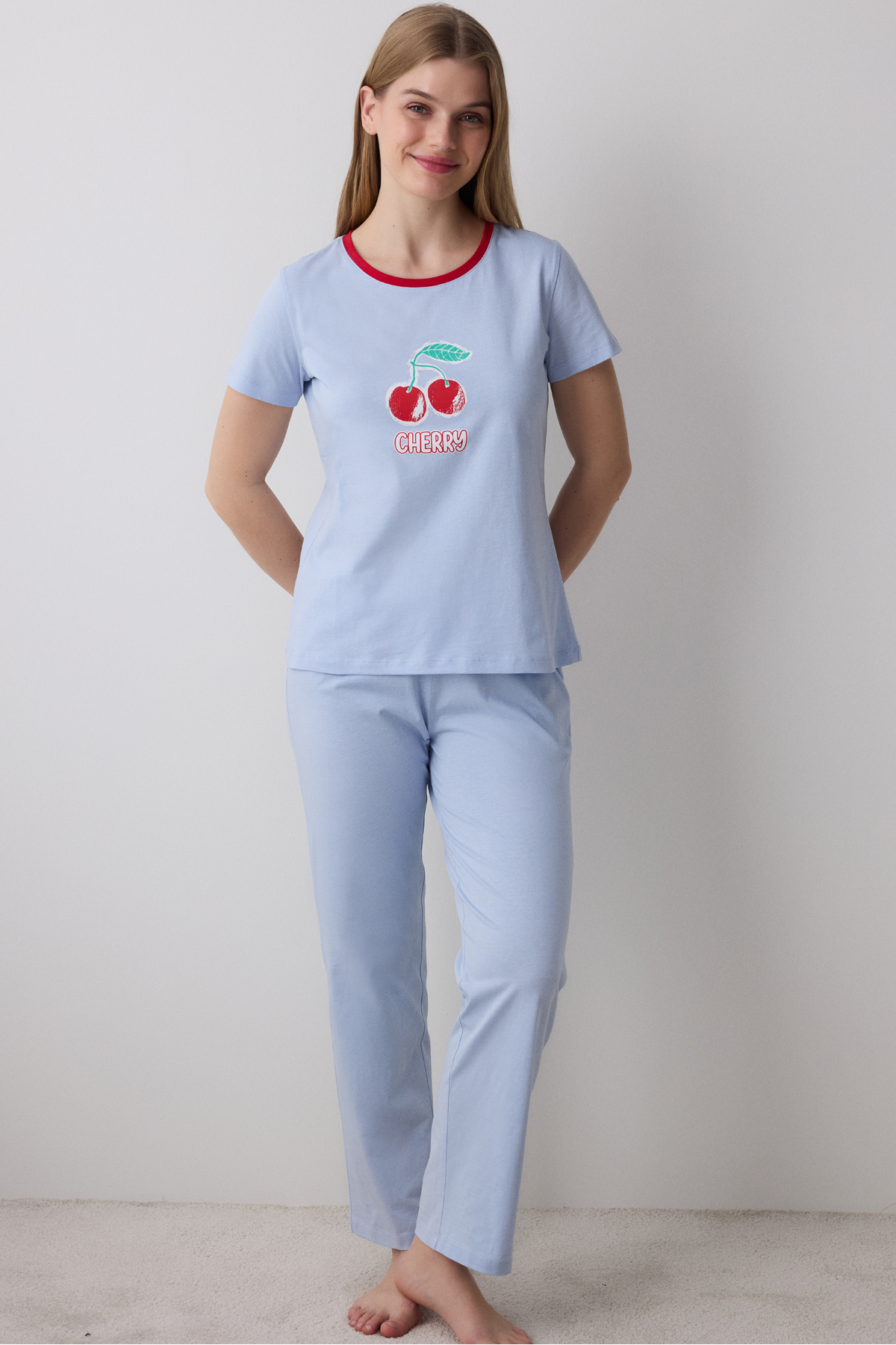 ميزات طقم بيجامة بنطلون الكرز باللون الأزرق الفاتح من Penti