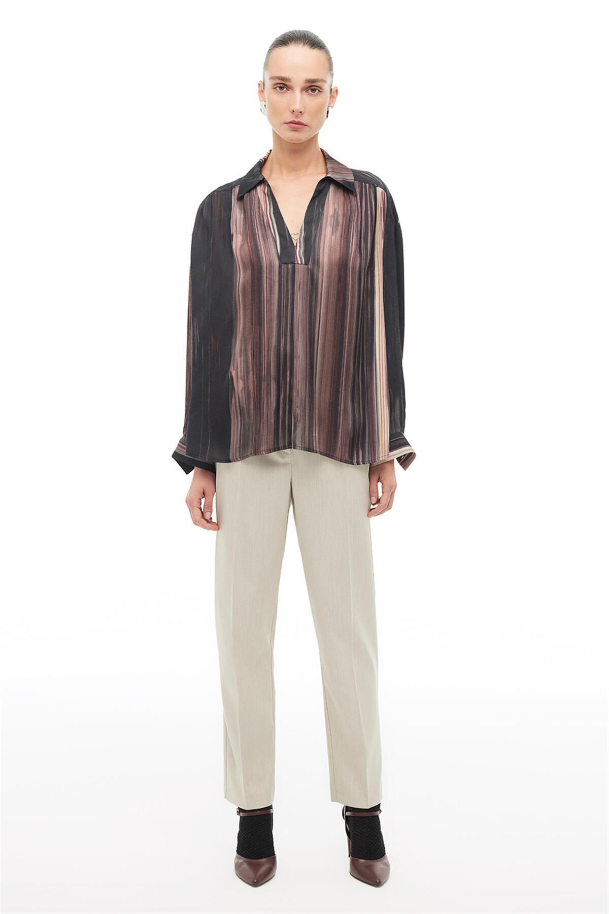 ميزات بلوزة مخططة متعددة الألوان بياقة قميص من Perspective