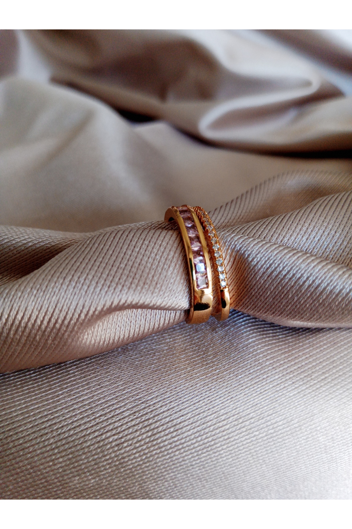 ميزات خاتم قابل للتعديل بتصميم حجري مزدوج من الذهب الوردي من Pervin Ablacım