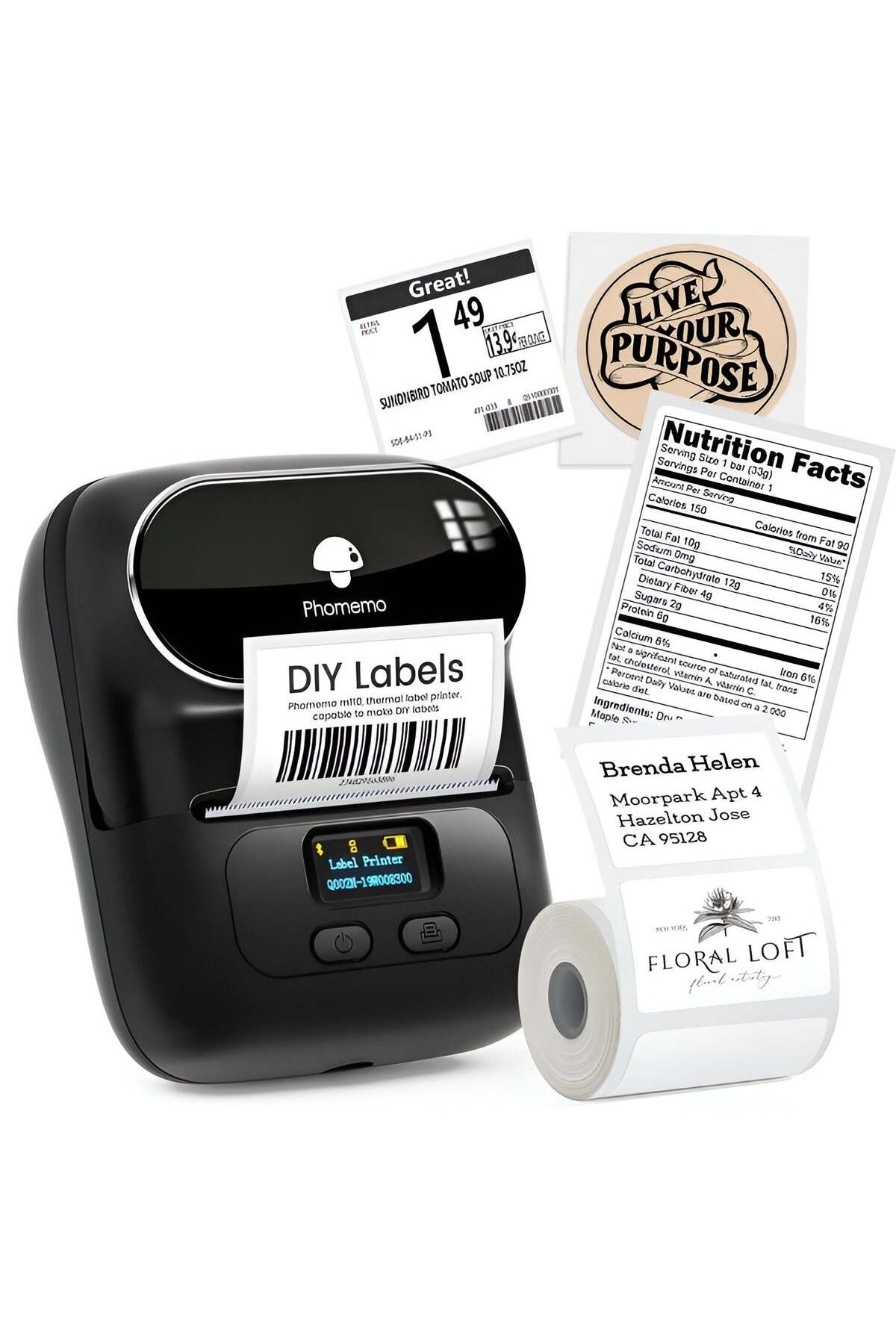 Phomemo طابعة ملصقات الباركود M110، صانع ملصقات بلوتوث، طابعة حرارية محمولة