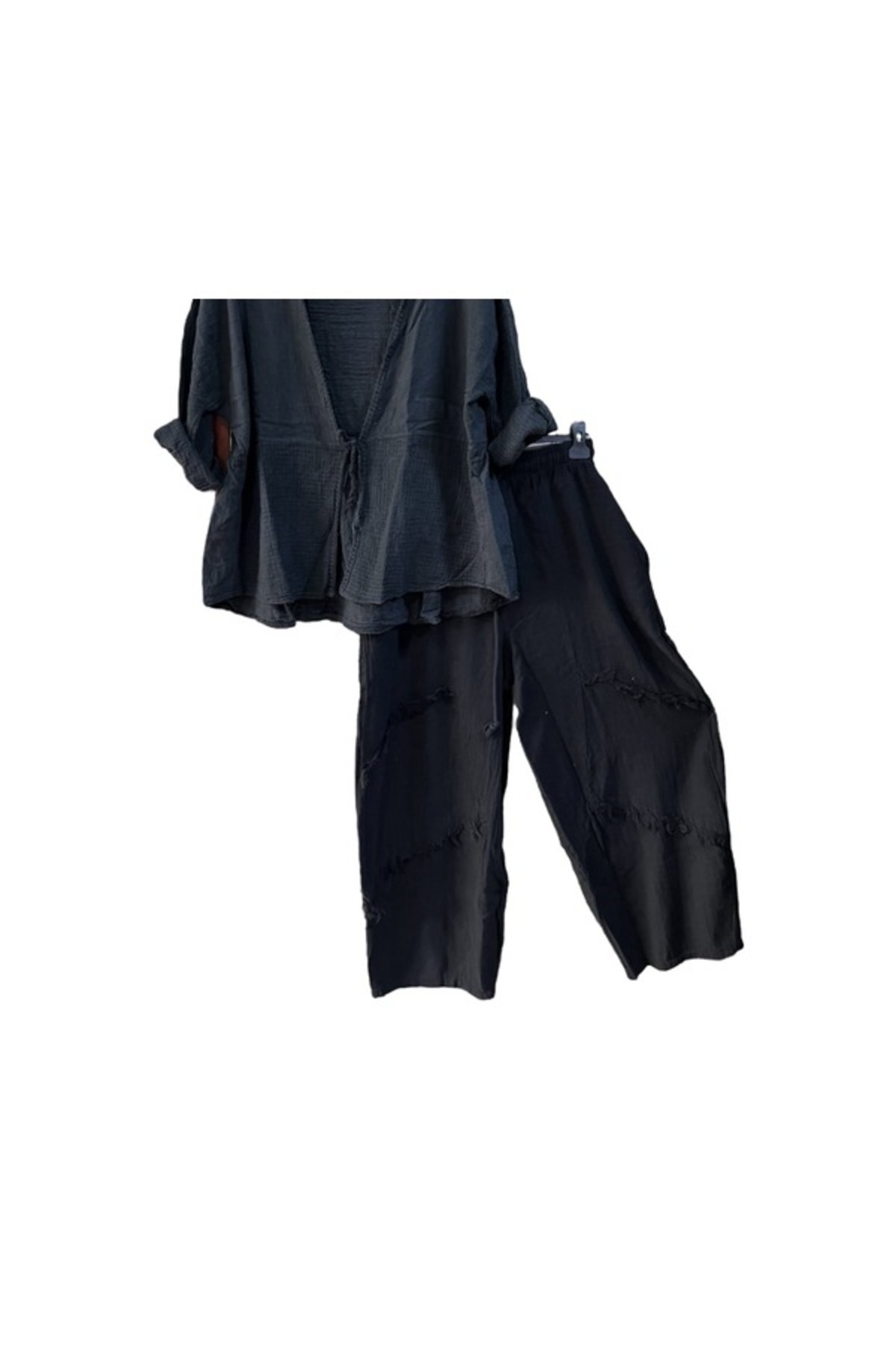 PHUTİ COLLECTION بنطلون كتان مجزأ