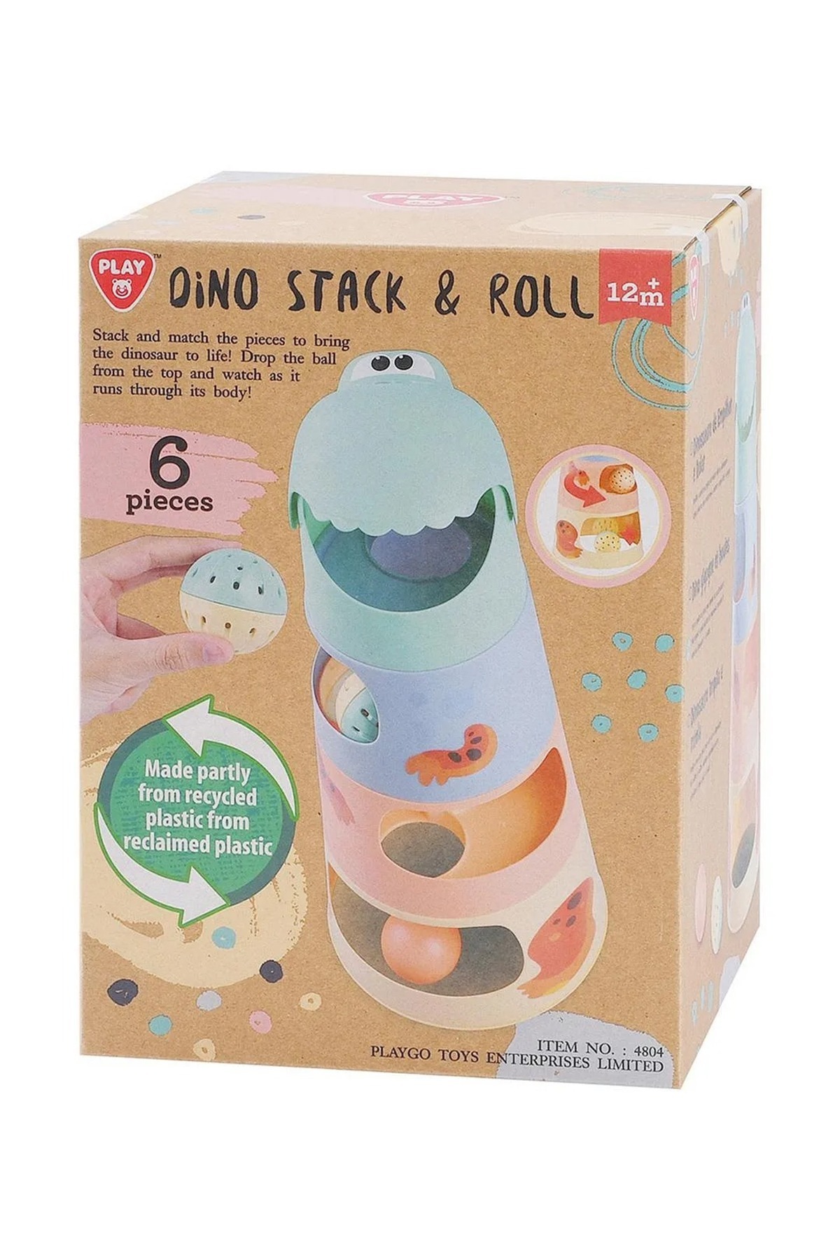 ميزات لعبة دينو ستاك آند رول - 6 قطع - مواد معاد تدويرها من Play Go