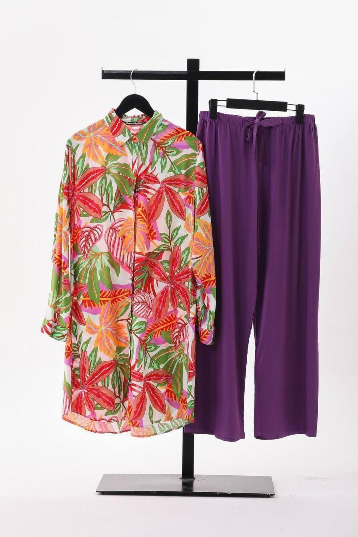ميزات سترة فيسكوز منقوشة بأوراق الشجر من Polologin Butik