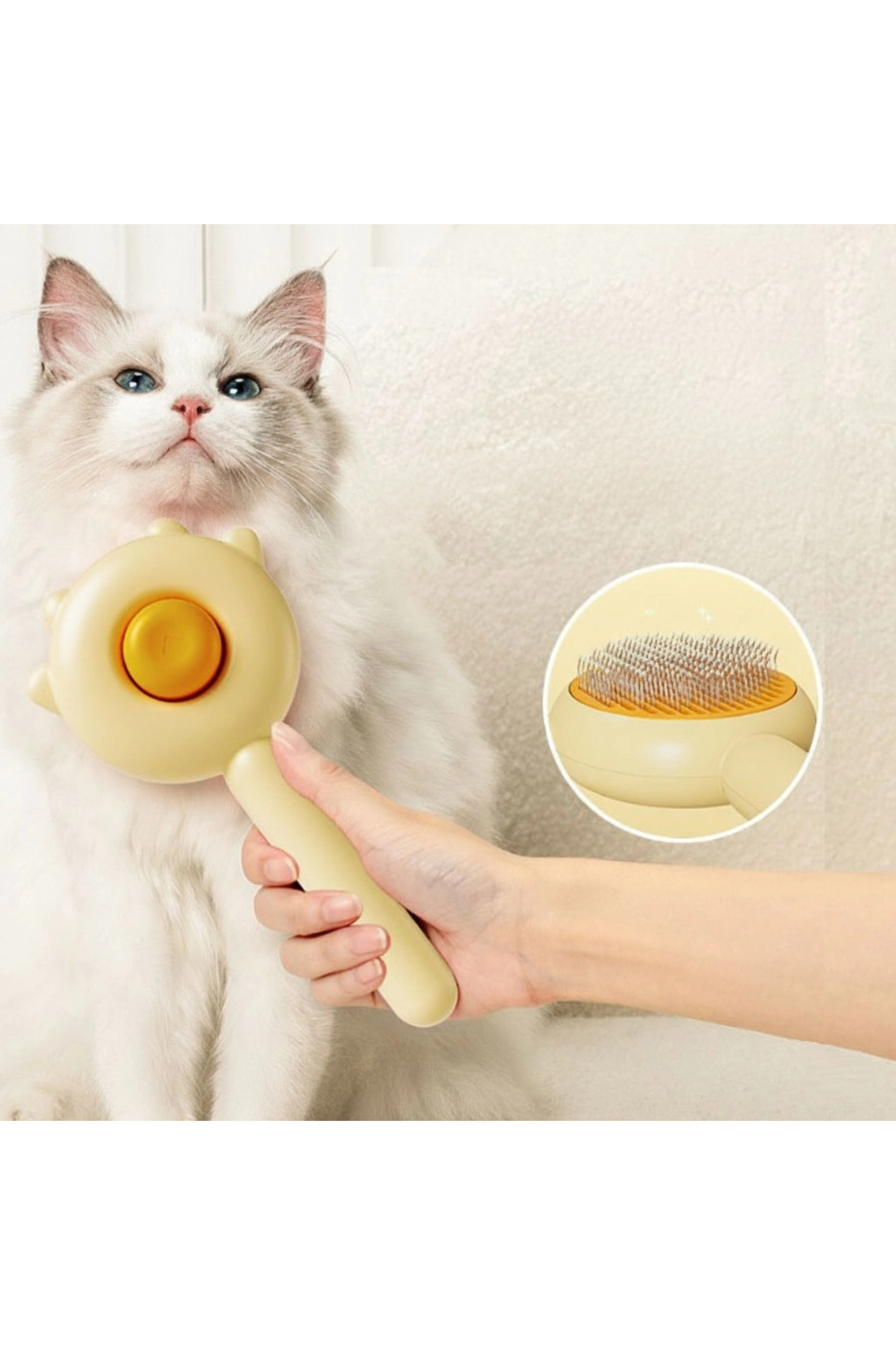 PONNA مشط الحيوانات الأليفة ذو التنظيف التلقائي بتصميم Pati