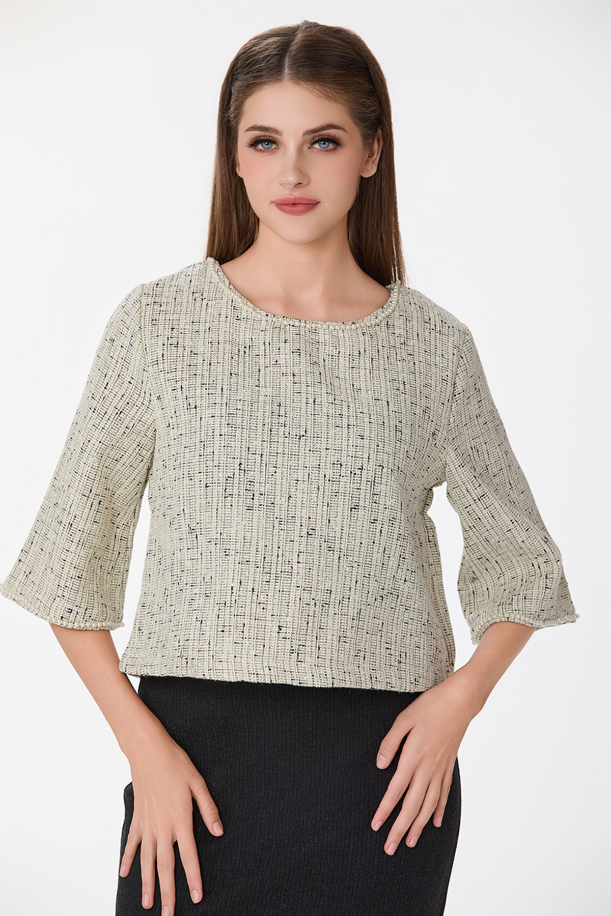 prando بلوزة توييد مع اكسسوار