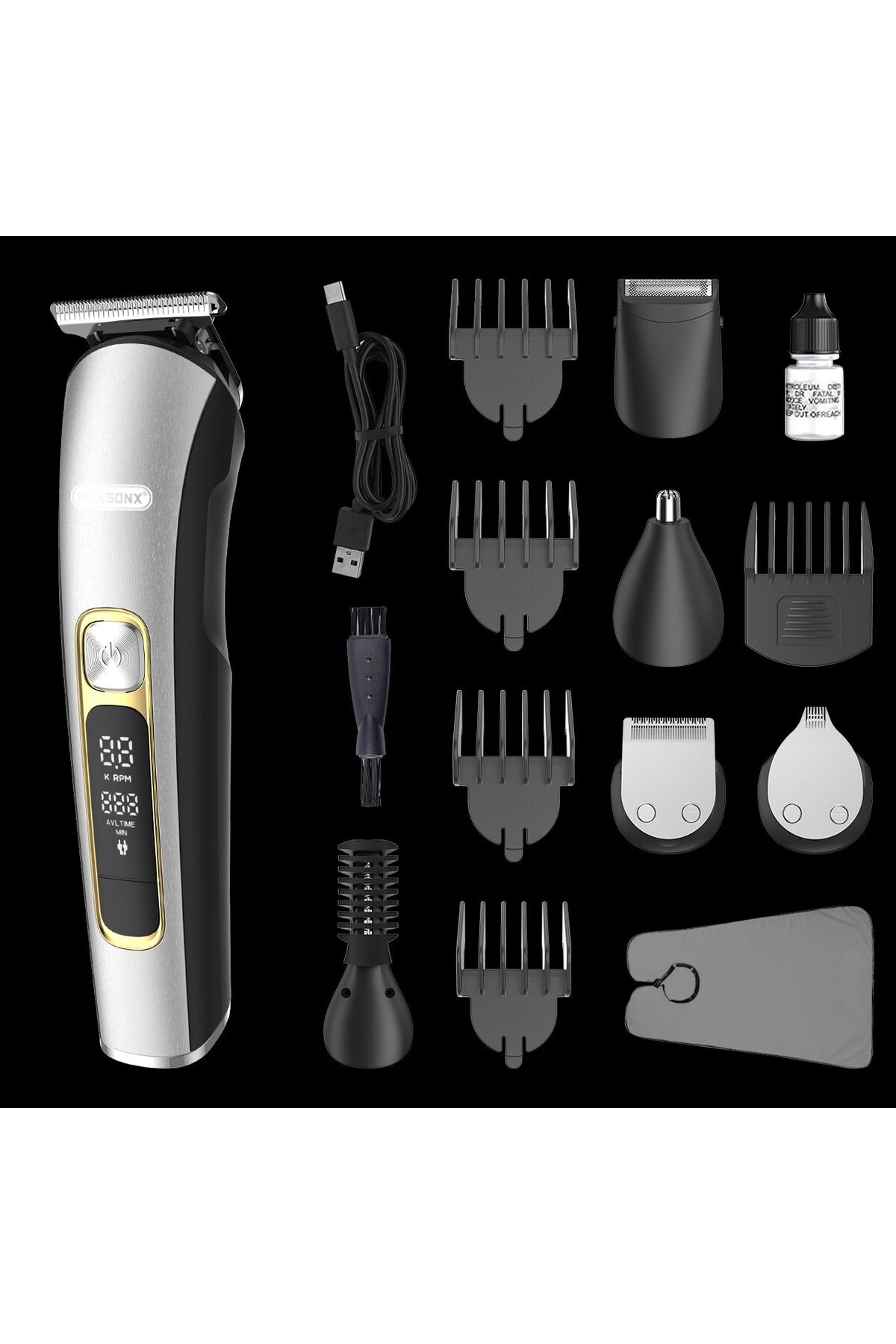 ✔️ مشط، سفرة للحلاقة، كيبل شحن، فرشاة تنظيف، زيت تشحيم، و11 قطعة إضافية لتخصيص الحلاقة حسب الحاجة.