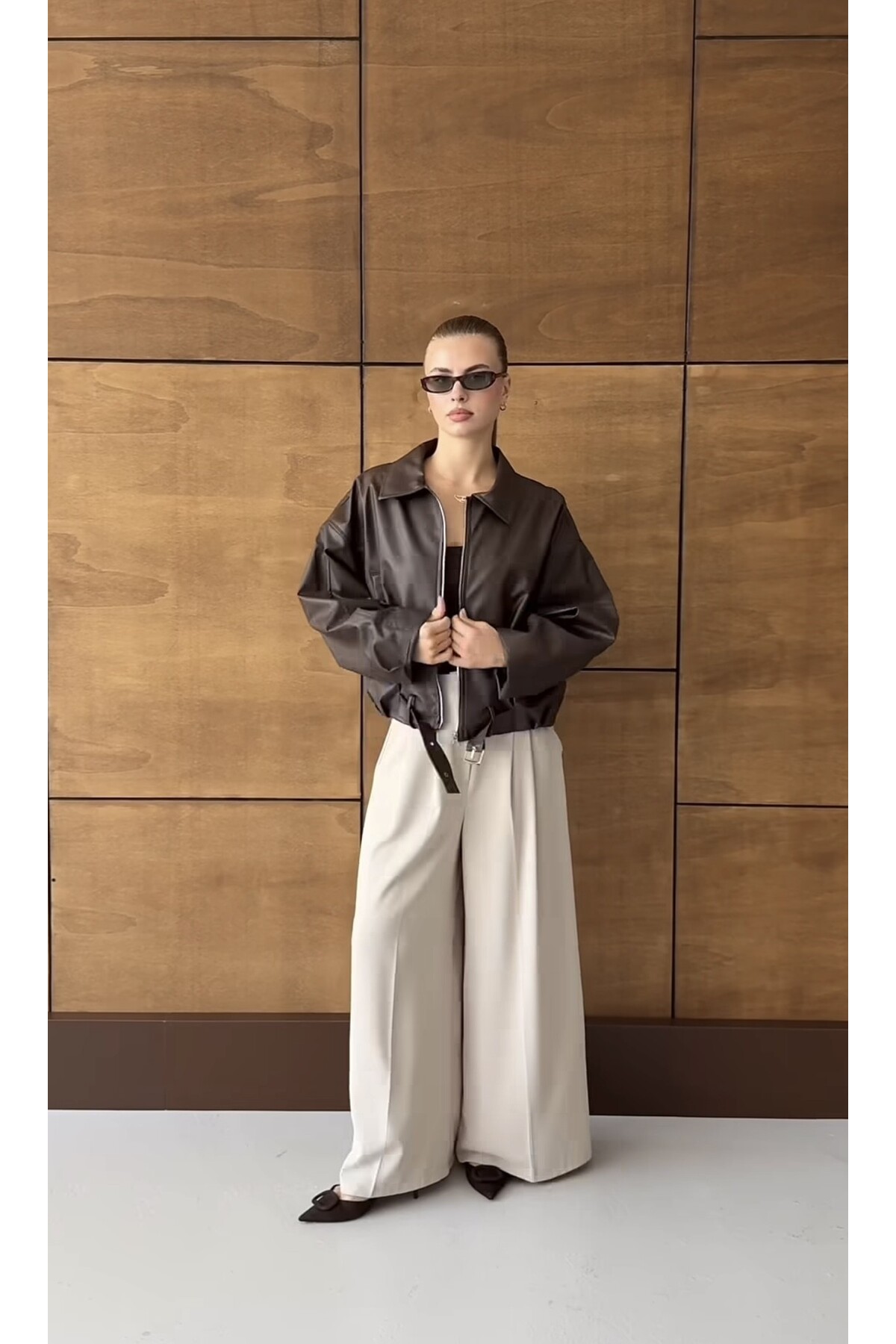 ميزات سترة جلدية كبيرة الحجم من PRİFALDİ