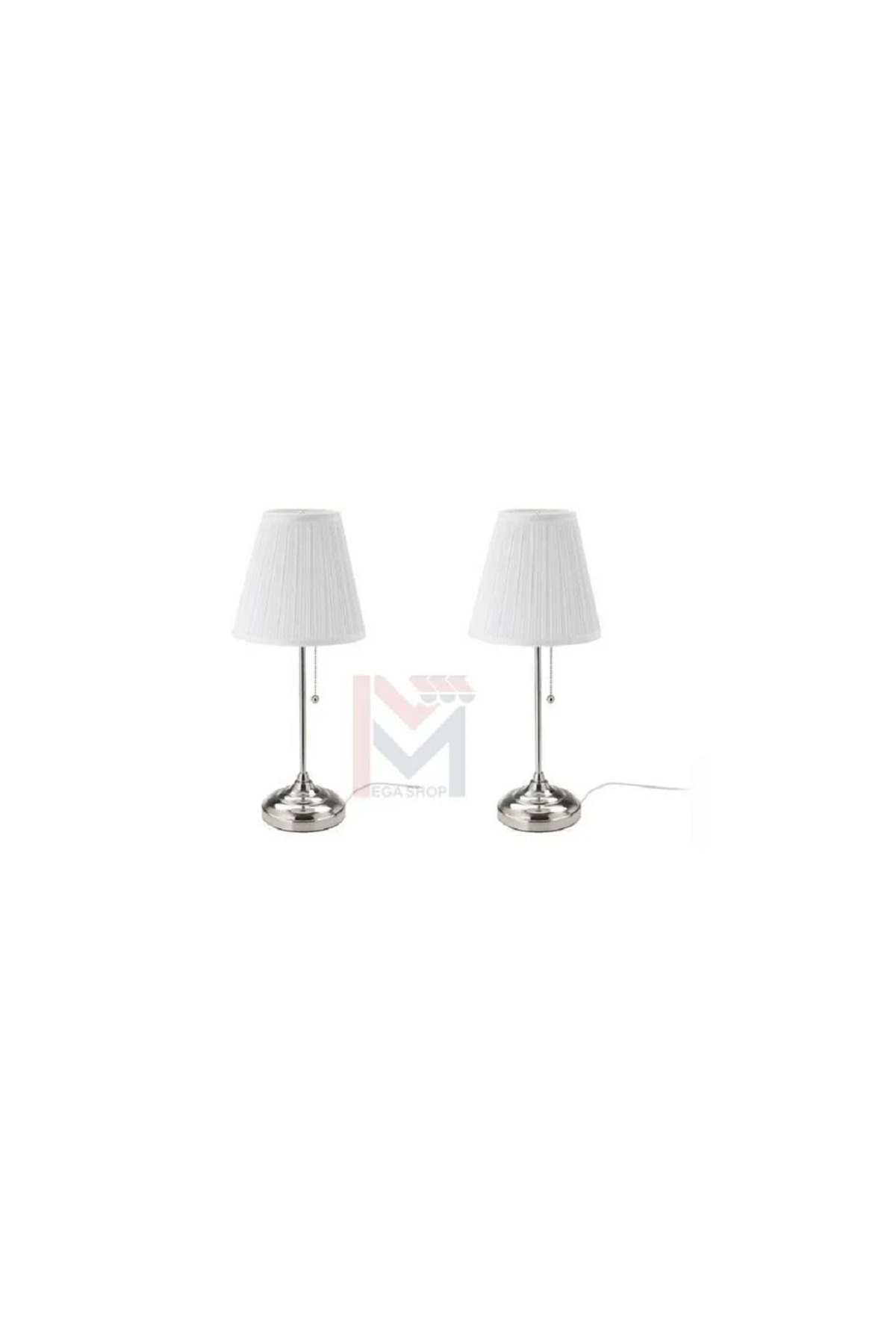 ميزات 2 مصباح طاولة فضي/أبيض من Primo Plus