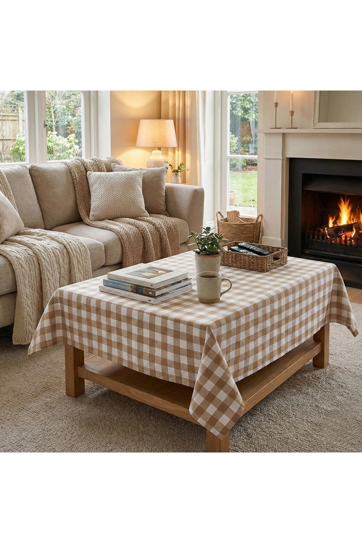 Primo Plus مفرش طاولة مقاوم للماء بنقشة مربعات، بني/أبيض