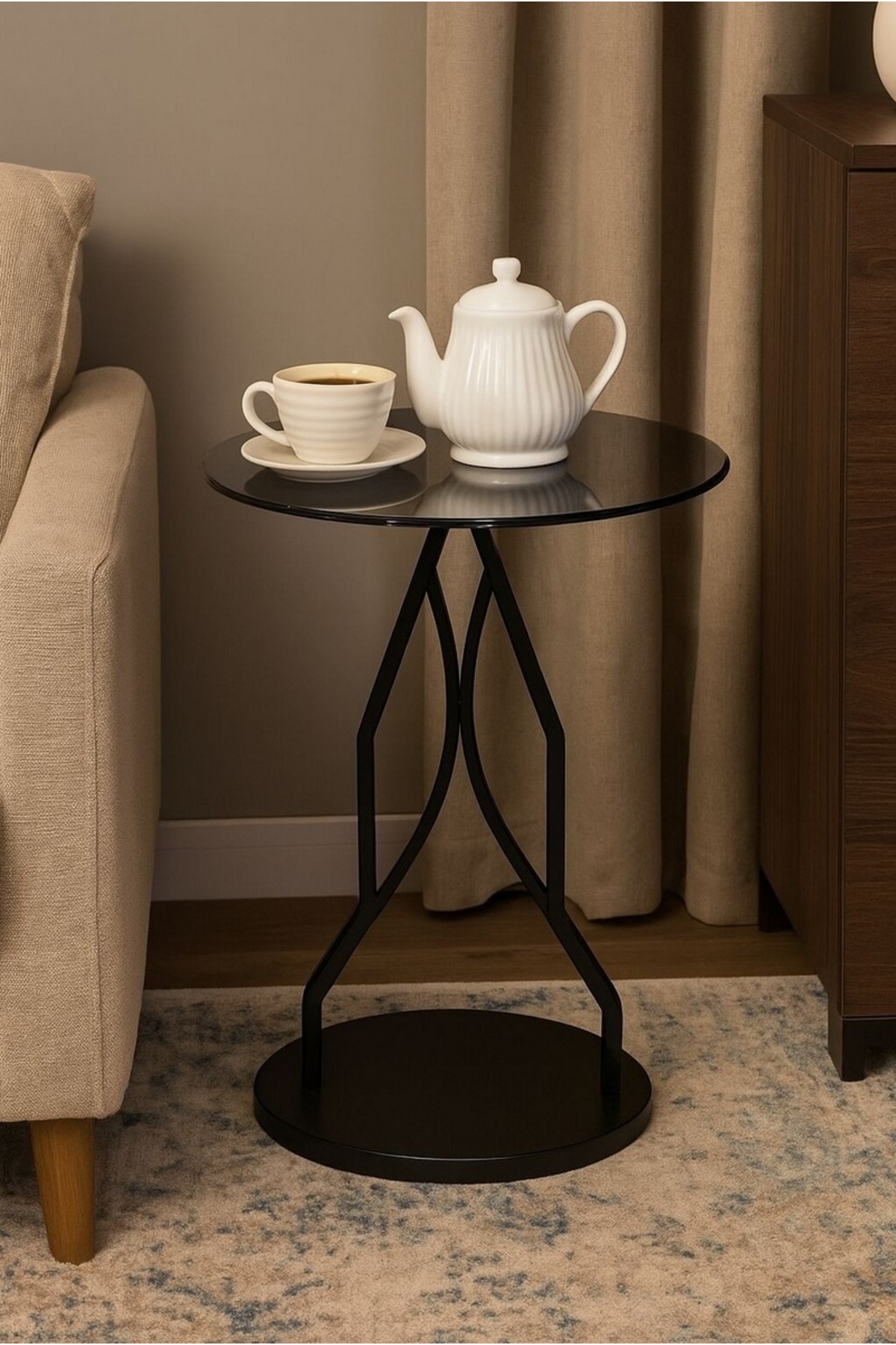private house طاولة خدمة جانبية زجاج أسود