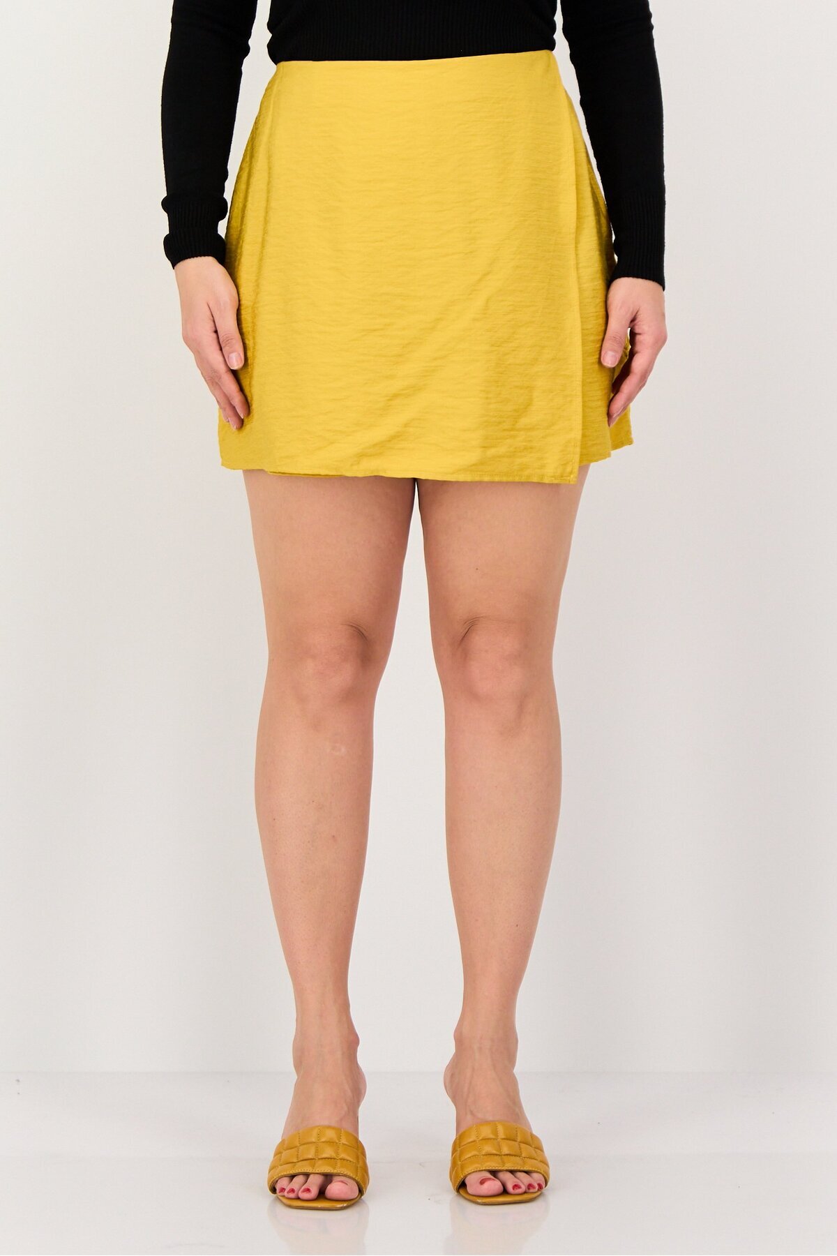 PROMOD تنورة نسائية أساسية سادة، لون خردل