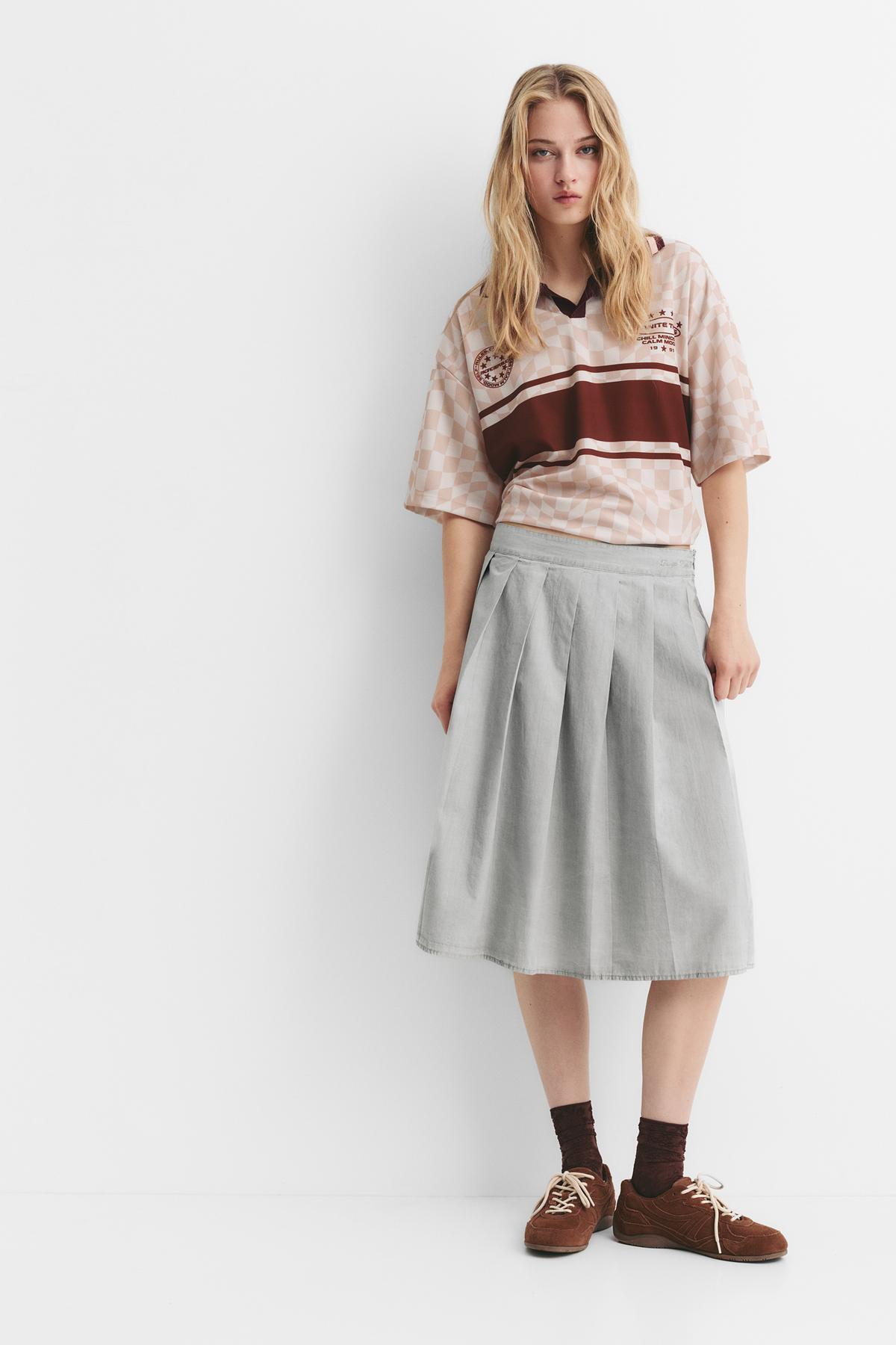 Pull & Bear تنورة ميدي ذات طيات مربعة