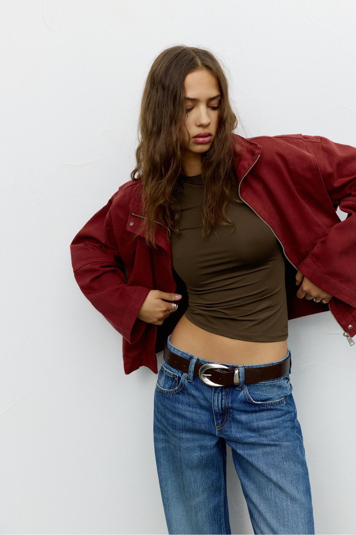 ميزات تي شيرت من مادة البولي أميد بأكمام قصيرة من Pull & Bear