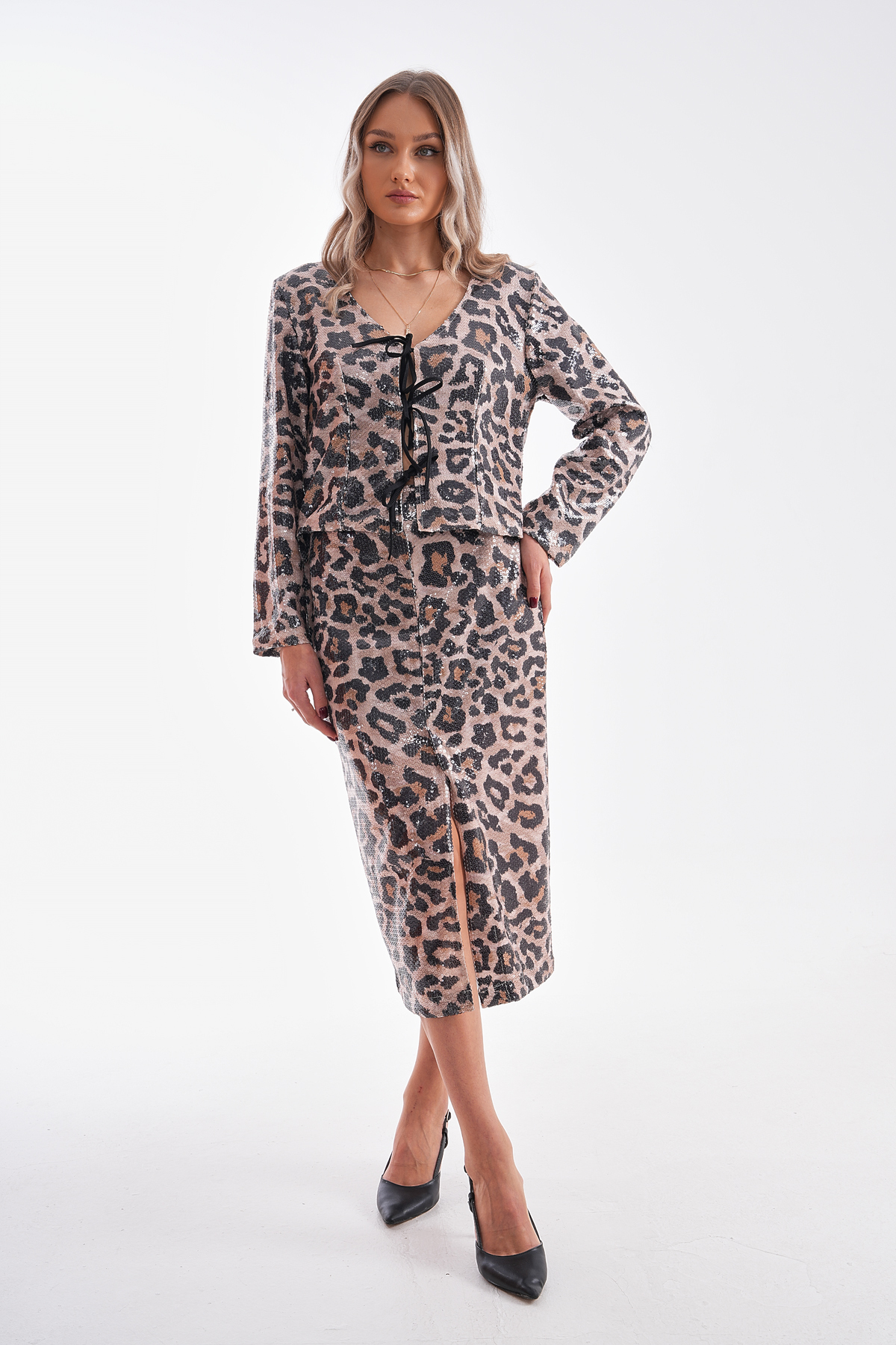 Pulli Collection تنورة قلم رصاص منقوشة بنقشة الفهد - PLL-027