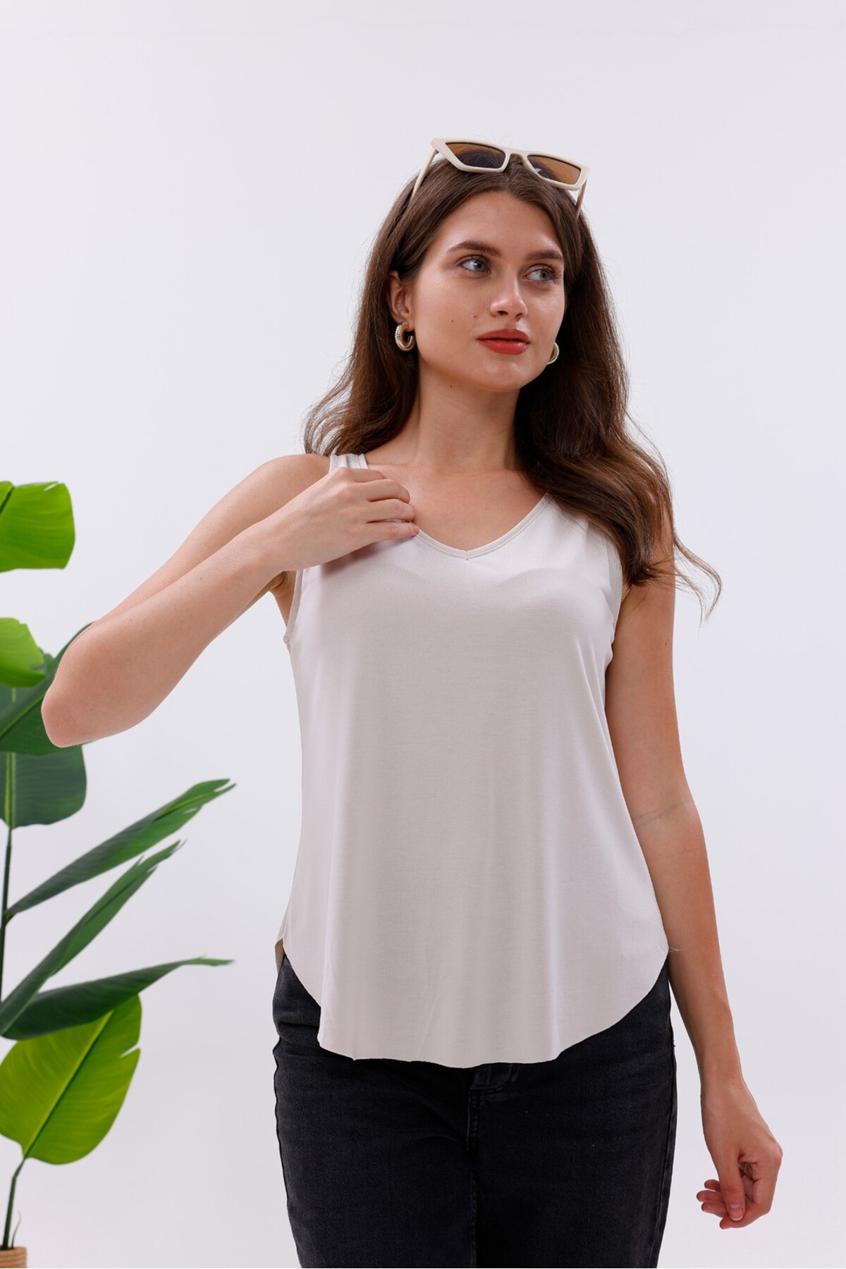 Pulli Collection قميص داخلي من نسيج الليكرا مودال برقبة على شكل حرف V