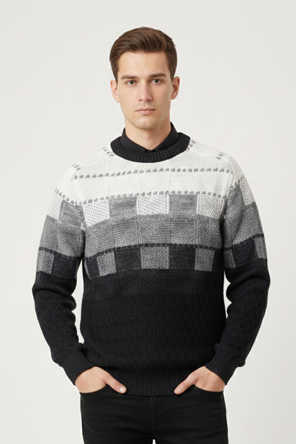 ميزات سترة رجالية بياقة دائرية ونقشة هندسية من Pulltonic