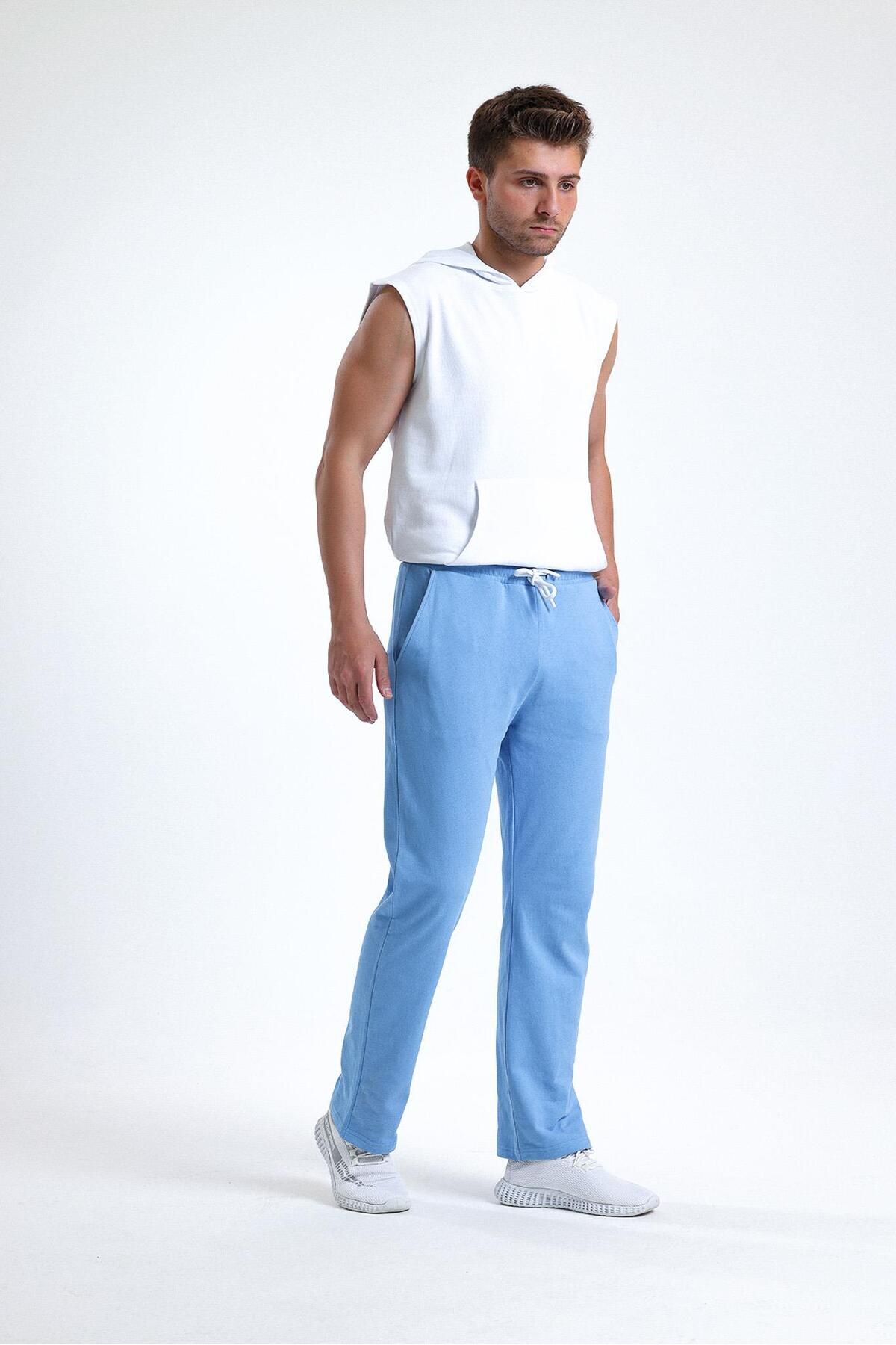 pulur.co بنطال رياضي بقصة عادية باللون الأزرق