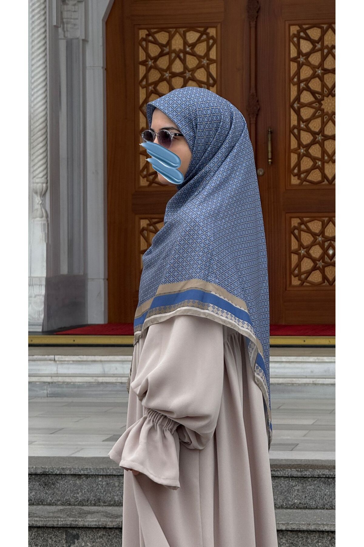 ميزات وشاح كبير الحجم بنمط مونوغرام - لون نيلي من Qalortex Scarf