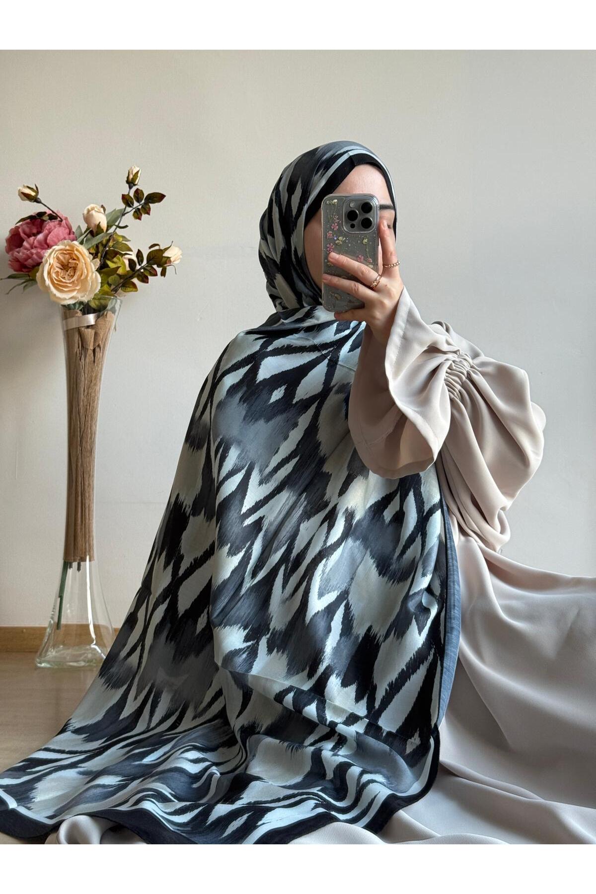 Qalortex Scarf شال بنمط الحمار الوحشي-أسود