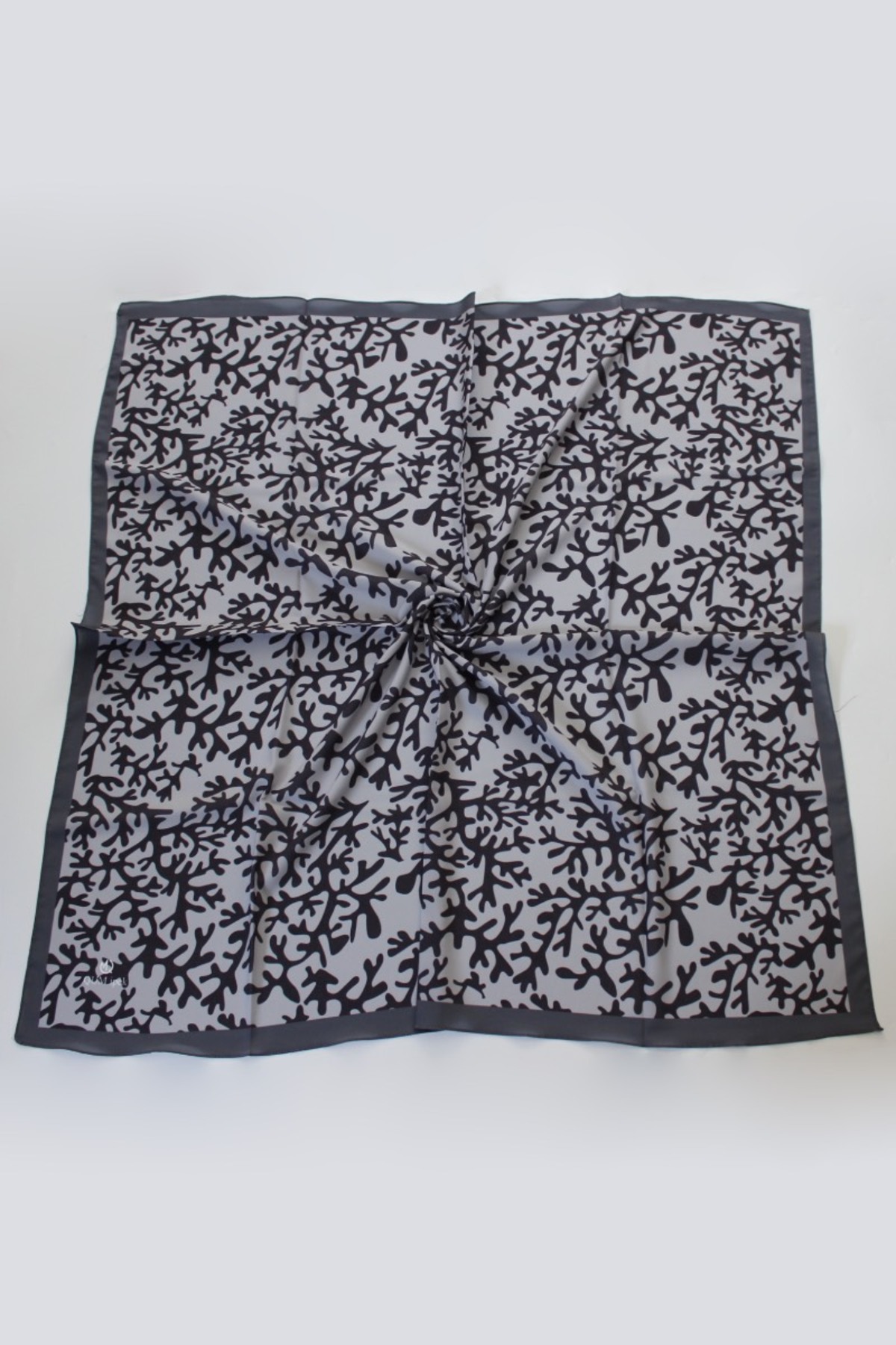 QUM İPEK وشاح رمادي منقوش من كريب موس
