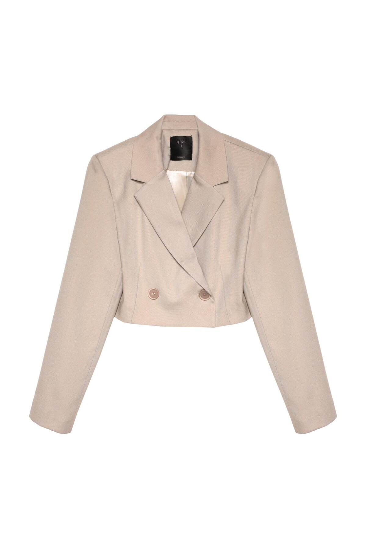 ميزات سترة قصيرة مبطنة باللون البيج بزر واحد من Quzu