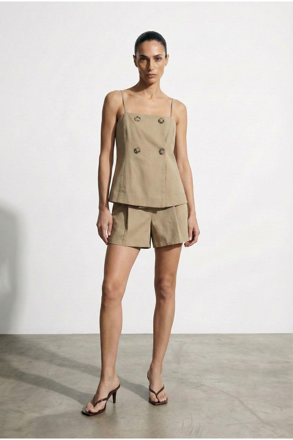ميزات بلوزة بأزرار باللون البيج من Quzu