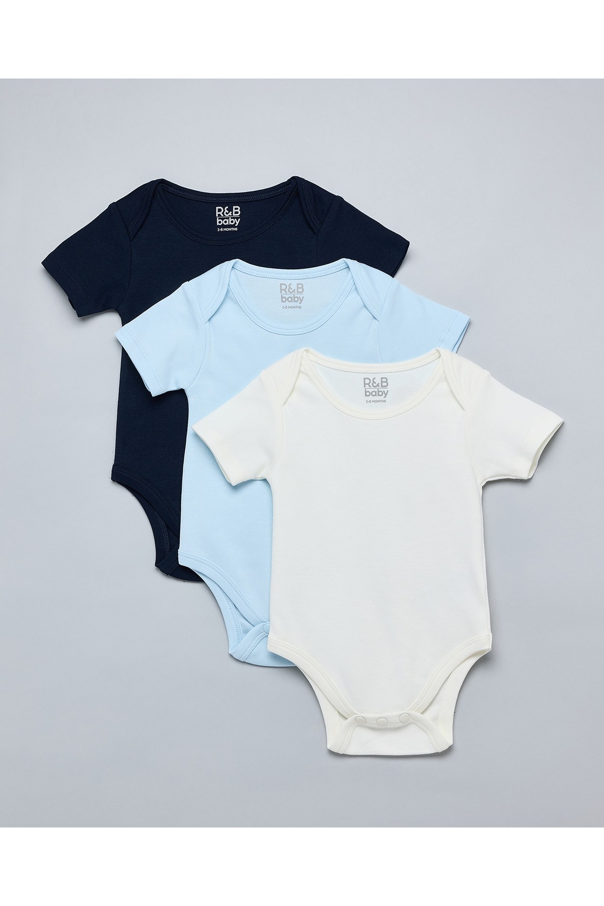 ميزات طقم من 3 بدلات جسم سادة بأكمام قصيرة من R&B