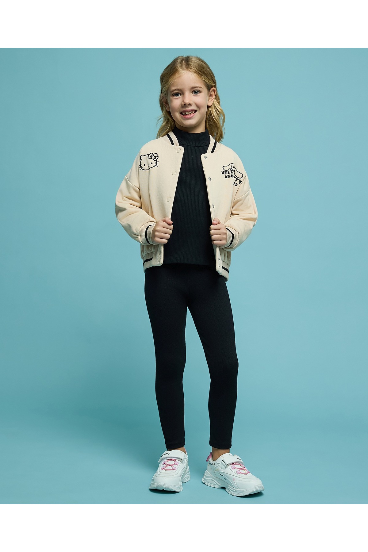 ميزات جاكيت مطرز بشخصية هيلو كيتي مع إغلاق بأزرار من R&B