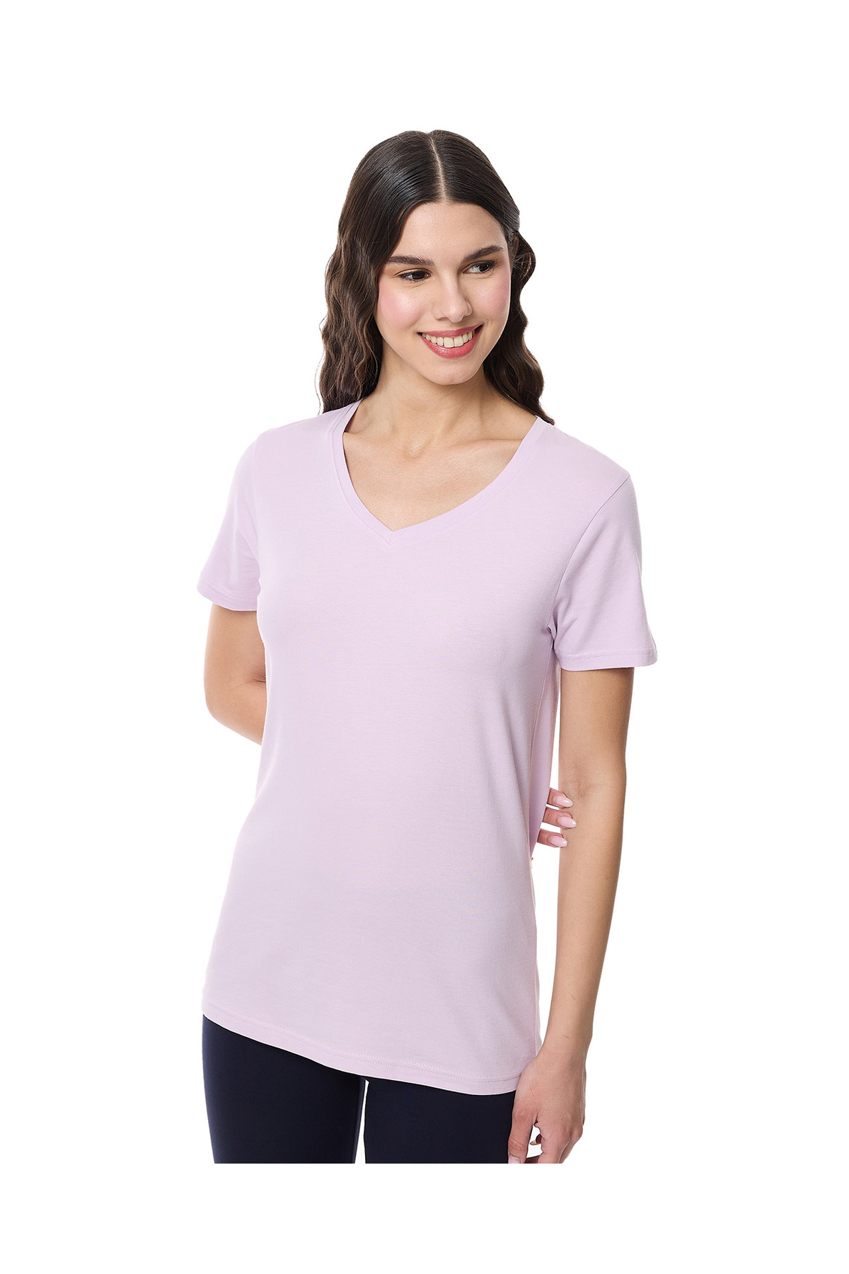 ميزات تي شيرت نسائي سادة بفتحة رقبة على شكل حرف V من لافندر فوغ، مقاس 8-18 من R&B