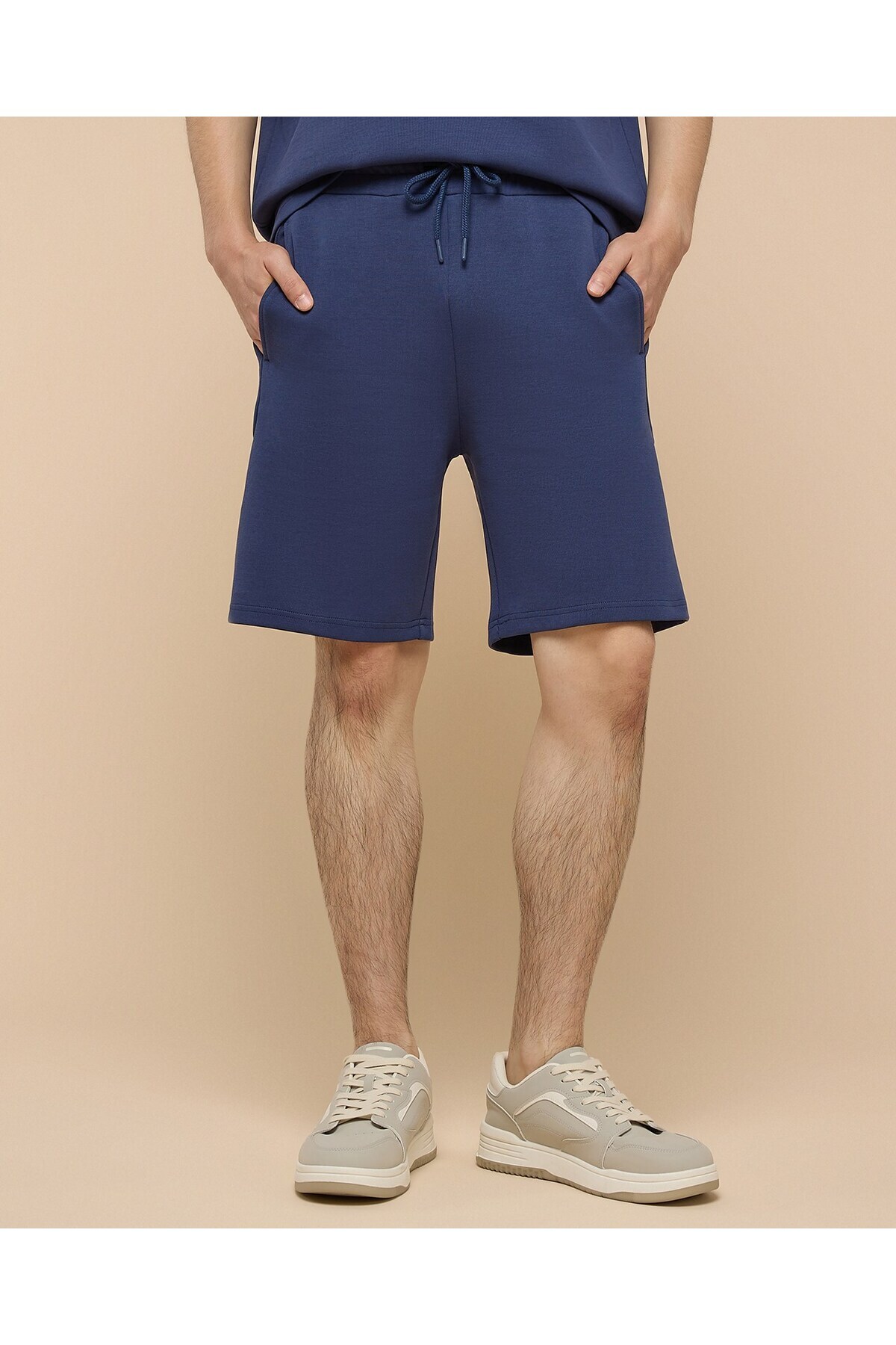 ميزات شورت رجالي أزرق فاتح سادة بخصر برباط من R&B