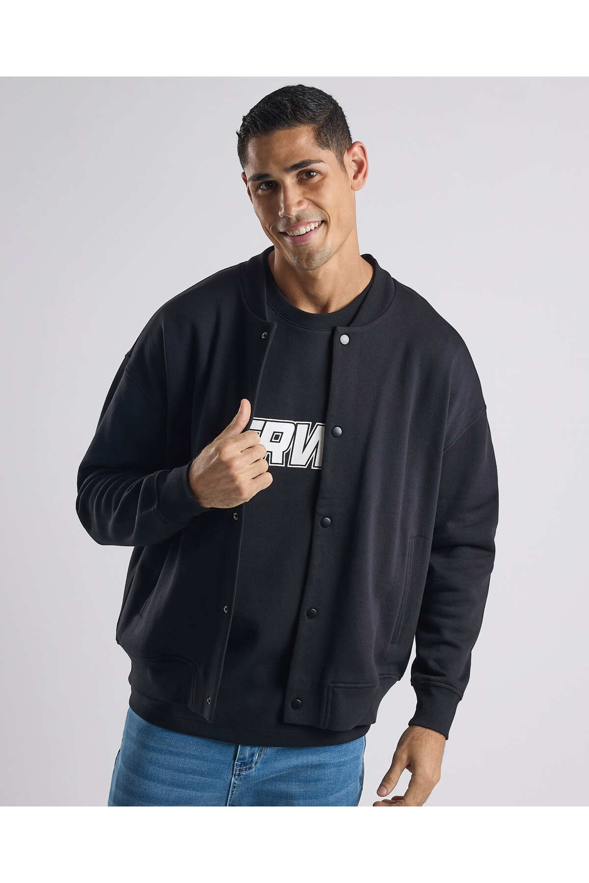 R&B سترة بومبر صلبة مع سحاب للإغلاق