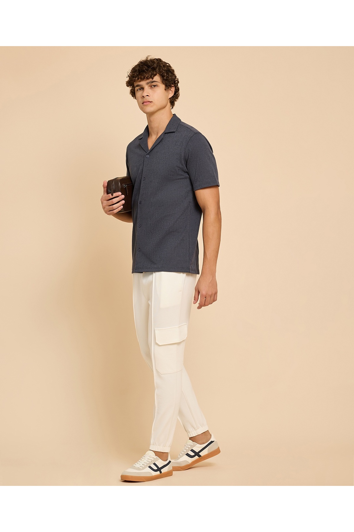 ميزات بنطلون رياضي كارجو سادة مع خصر برباط من R&B