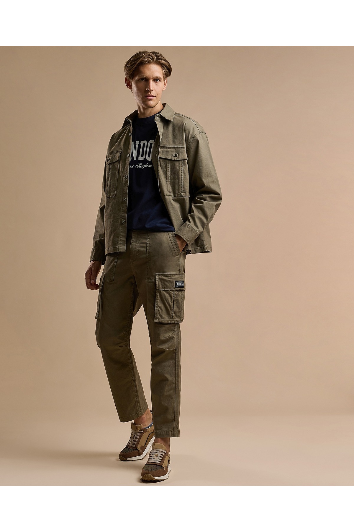 ميزات بنطلون كارغو سادة مع إغلاق بأزرار من R&B