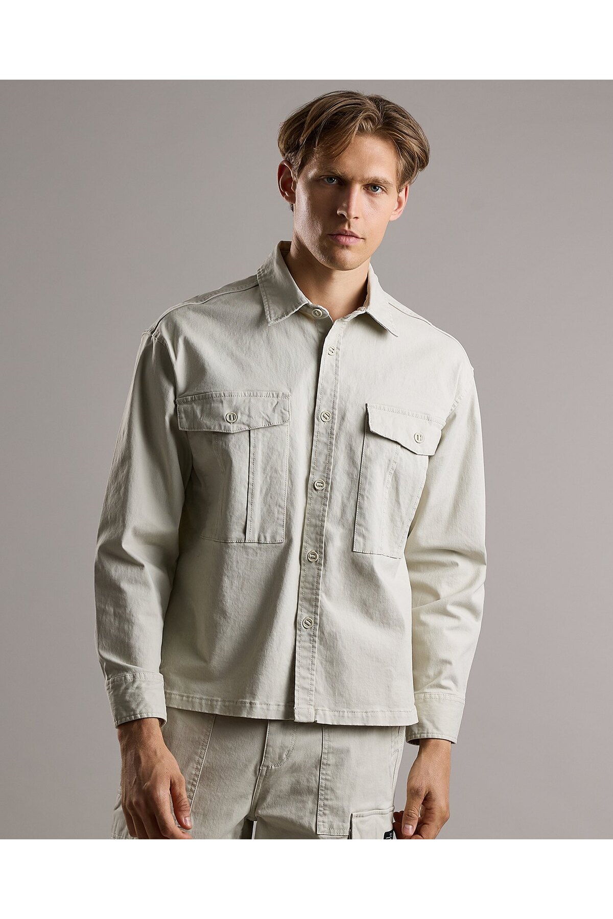 ميزات بنطلون كارغو سادة مع إغلاق بأزرار من R&B