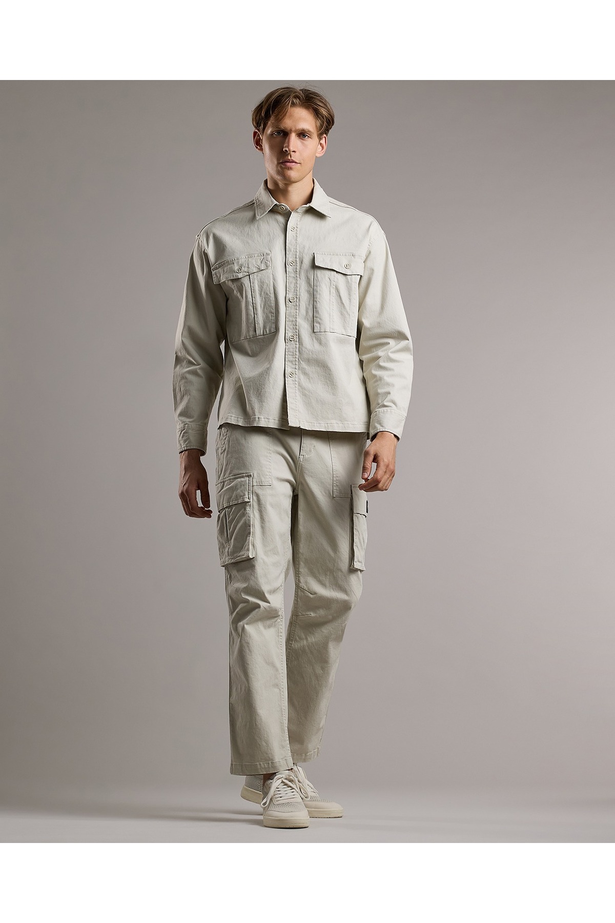 ميزات بنطلون كارغو سادة مع إغلاق بأزرار من R&B