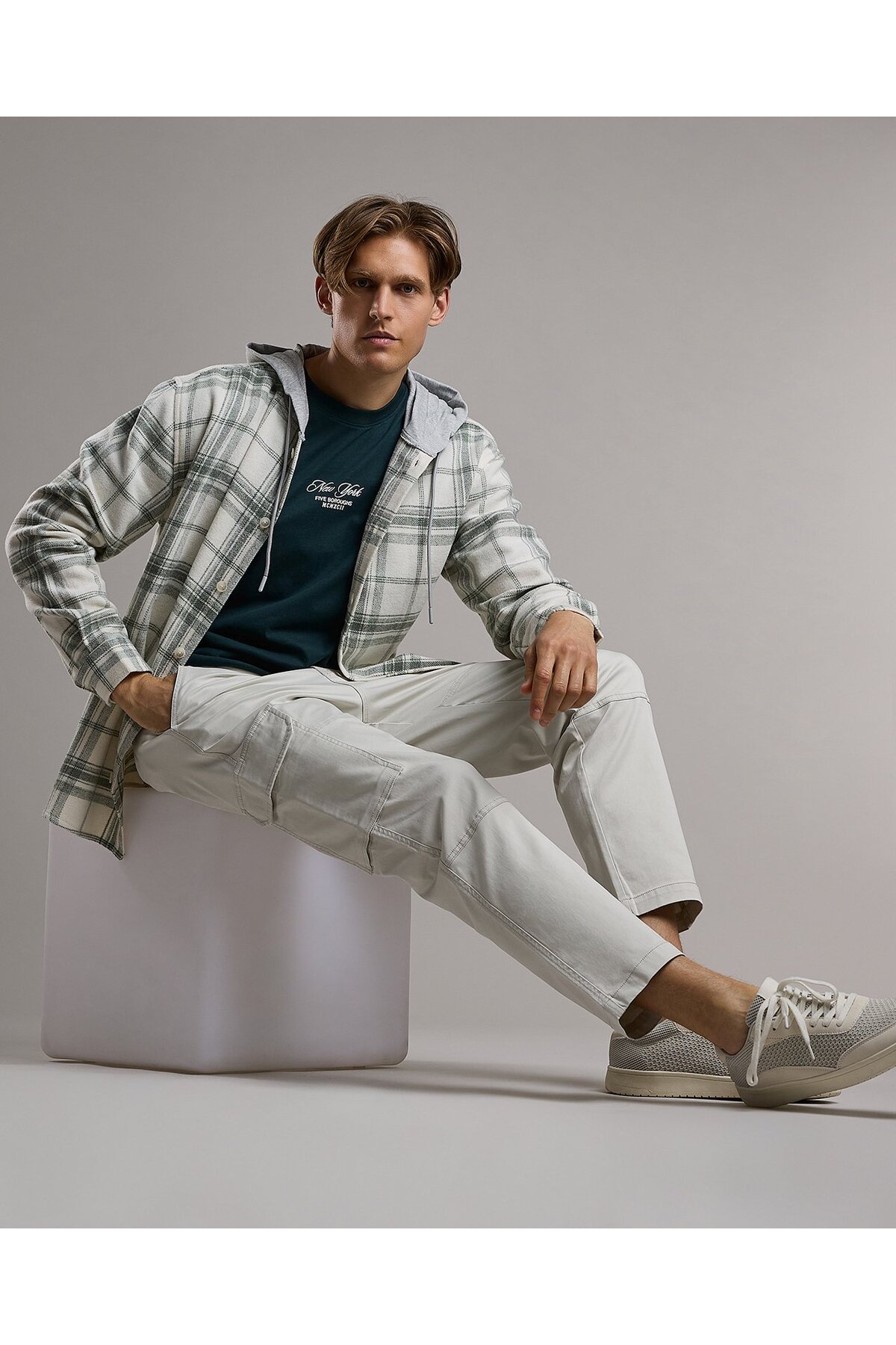 R&B بنطال تشينو سادة مع زر للإغلاق