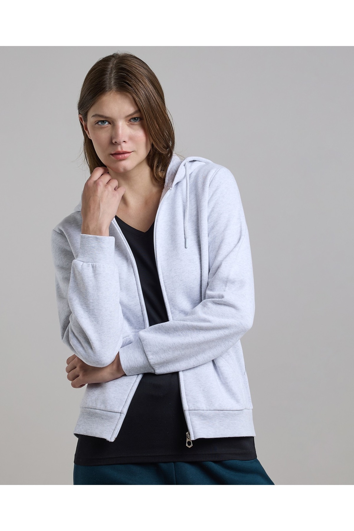 ميزات سترة سادة بغطاء رأس وسحاب للإغلاق من R&B