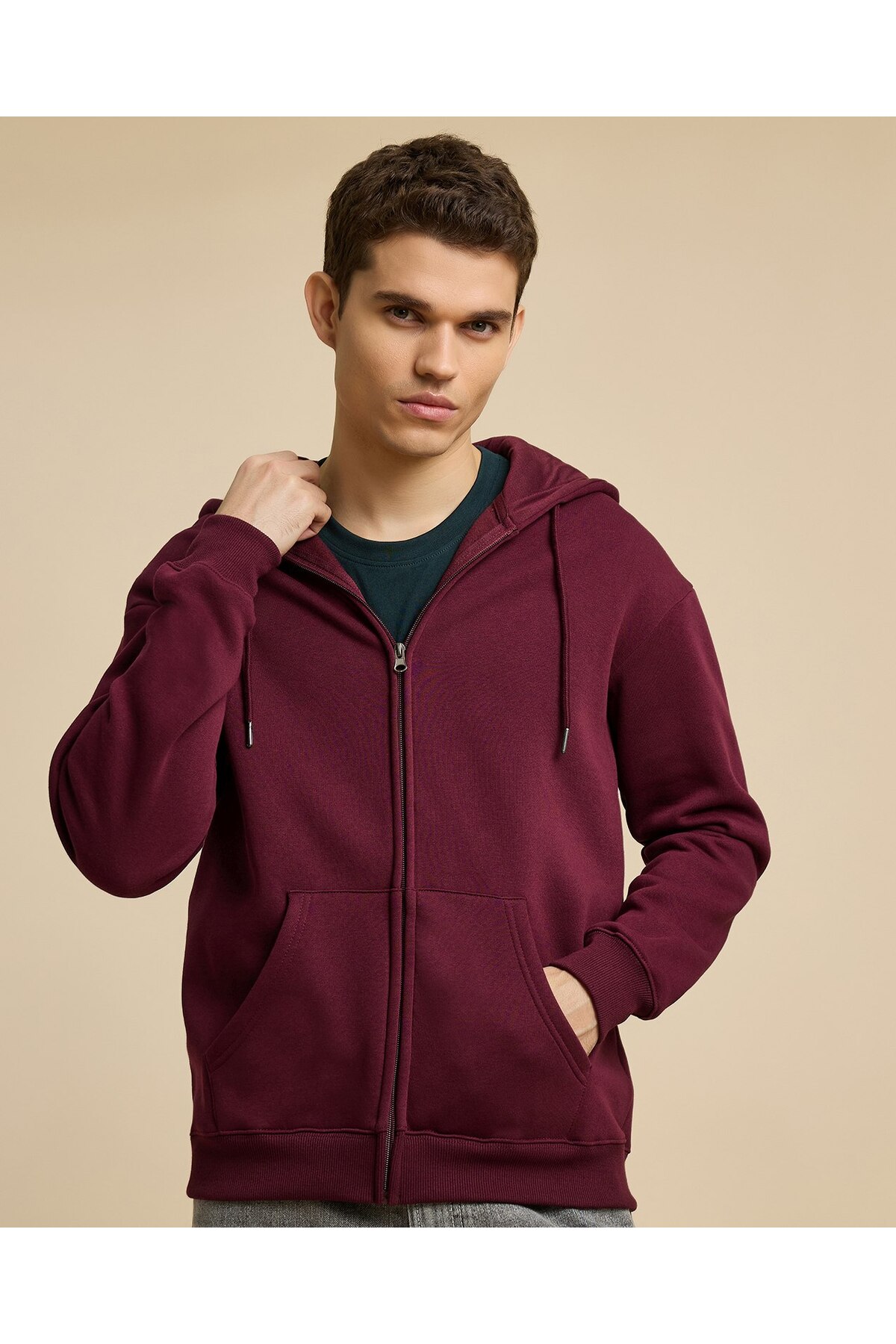 ميزات سترة سادة بغطاء رأس وسحاب للإغلاق من R&B