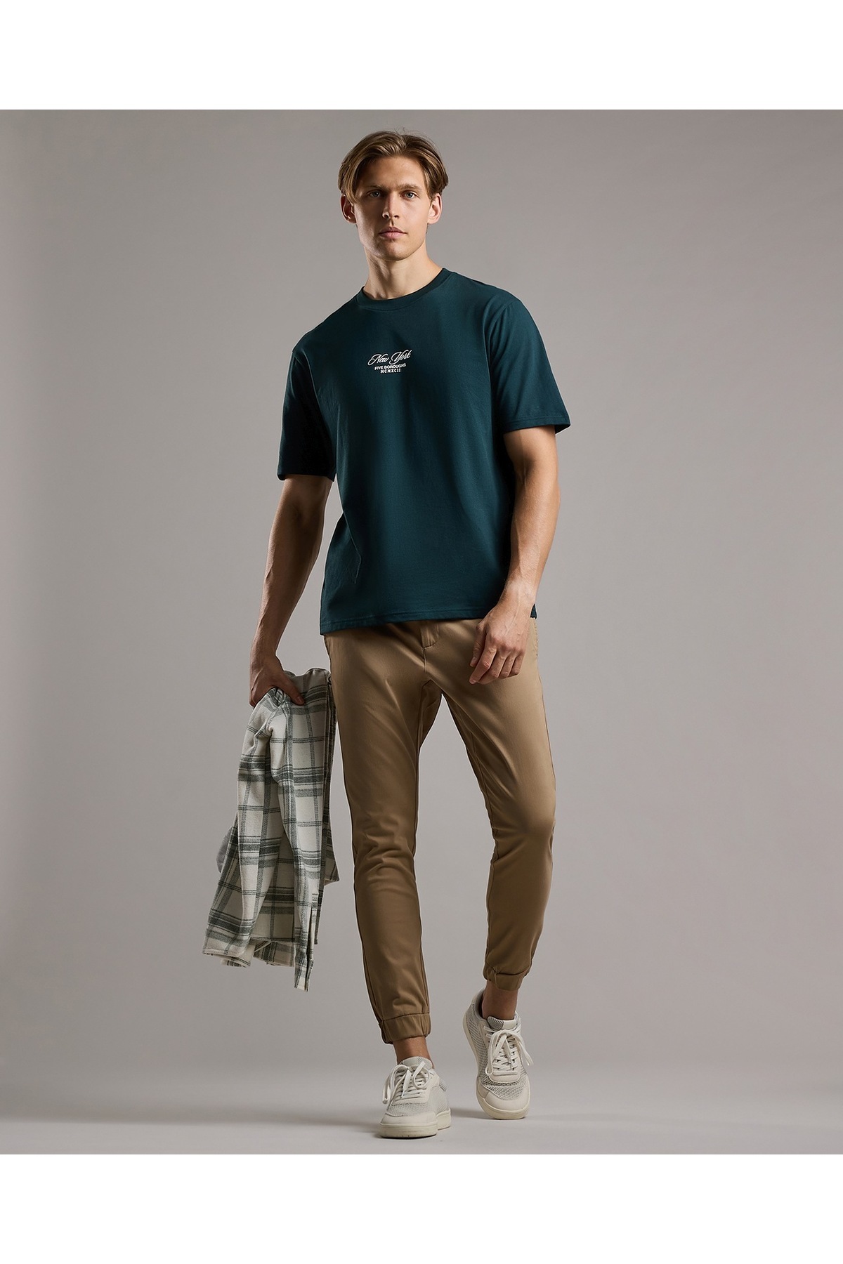 ميزات بنطال رياضي سادة مع خصر برباط من R&B