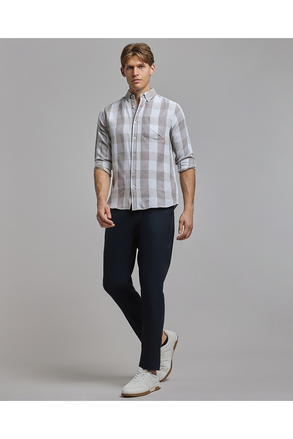 ميزات بنطلون ضيق سادة مع إغلاق بأزرار من R&B