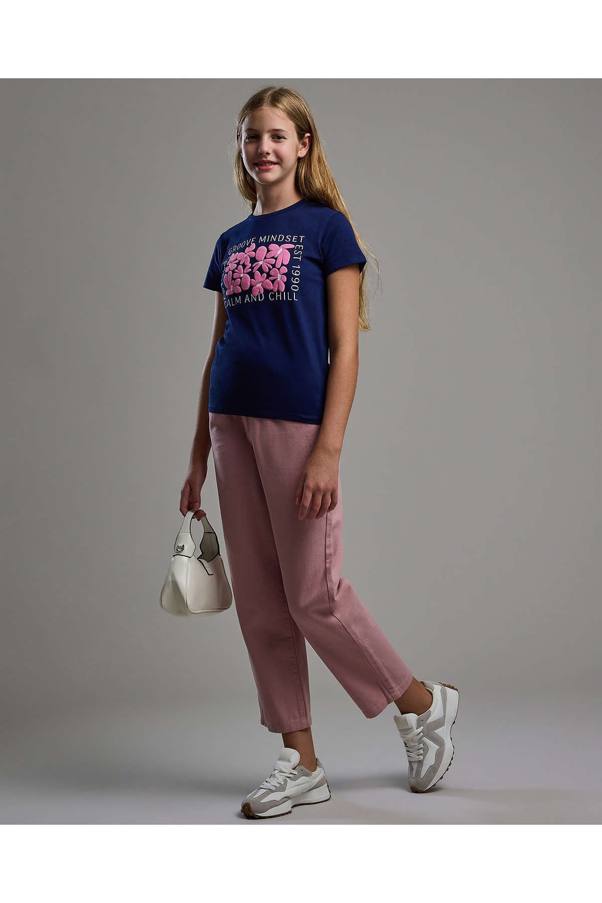 ميزات بنطلون منسوج سادة مع زر للإغلاق من R&B