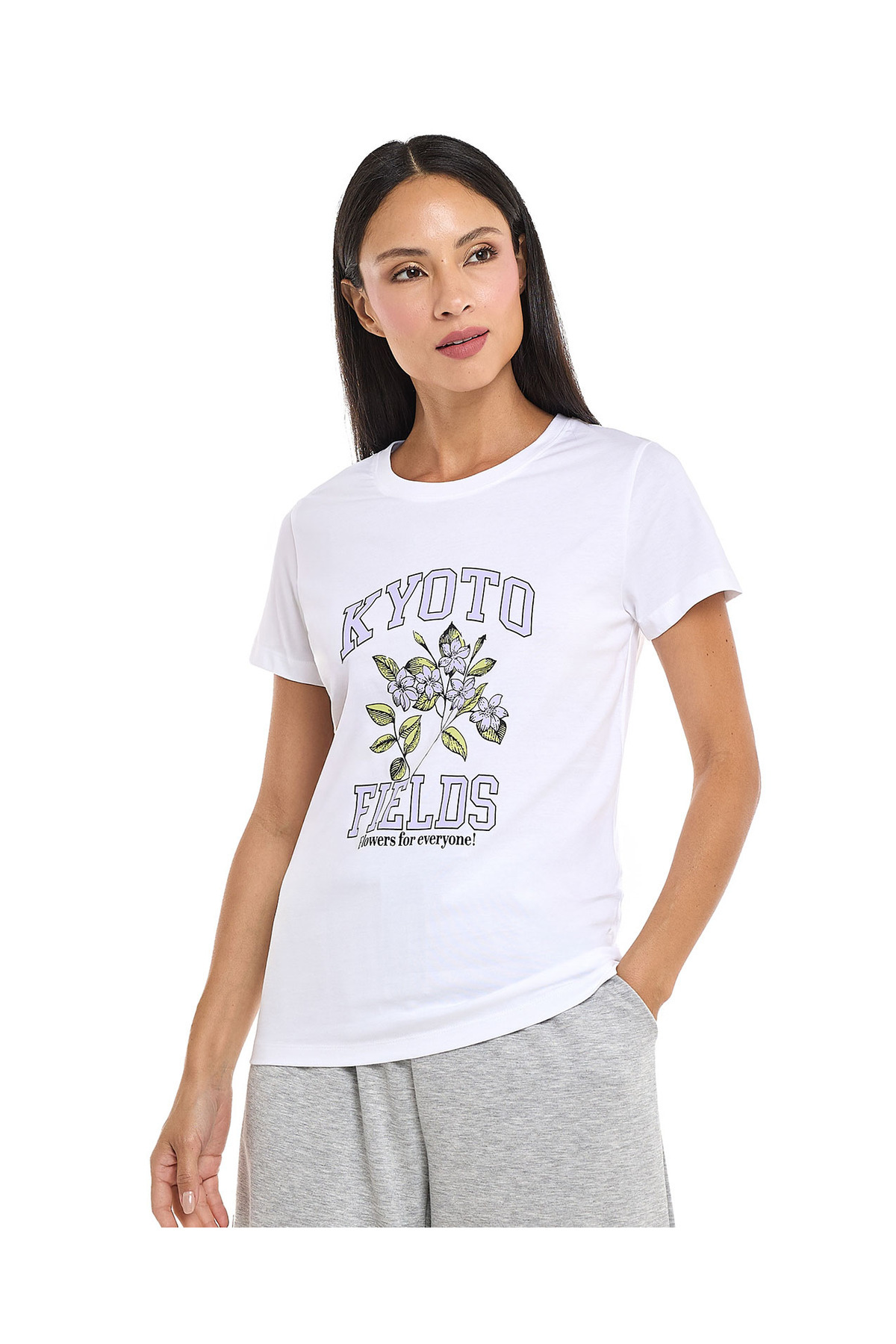 R&B تي شيرت نسائي أبيض برسومات أساسية مقاس 8-18